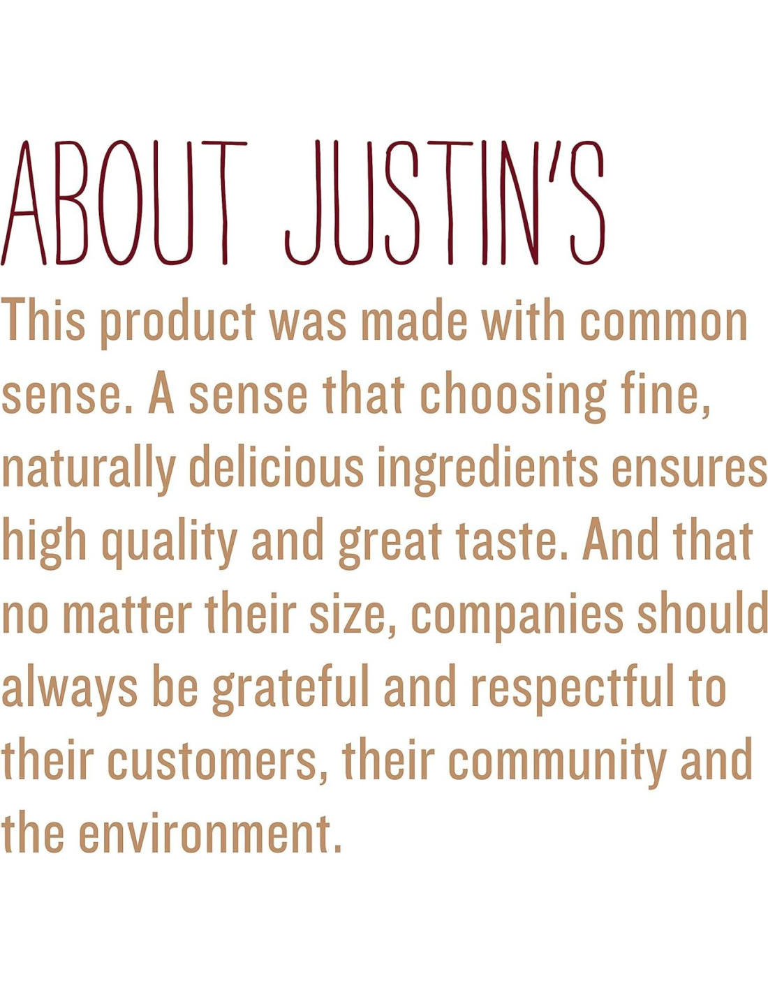 - Justin's: Al igual que el primer lote que Justin preparó en su cocina, nuestras mantequillas de nuez y confites utilizan solo los mejores ingredientes. Ni demasiado crujiente, ni demasiado suave, simplemente perfecto.