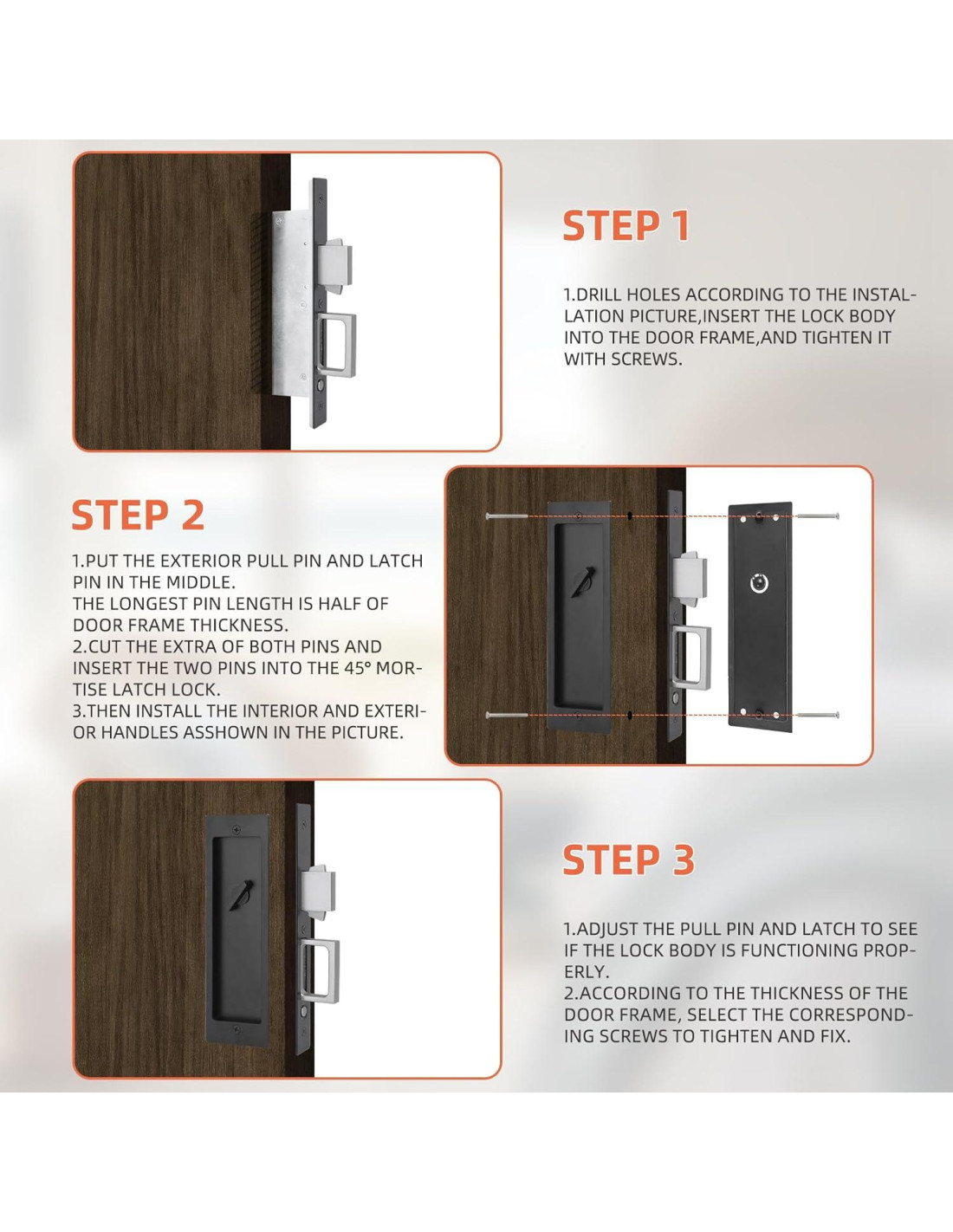 - Materiales de Alta Calidad: Hardware de cerradura de puerta de bolsillo hecho de aleación de zinc de alta calidad, más resistente al desgaste, resistente a la suciedad, anti-corrosión.