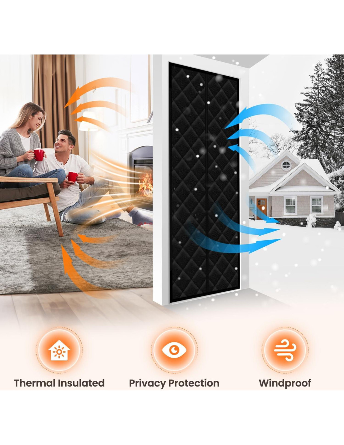 - Imanes Fuertes - Cierre Automático Sin Manos: Nuestra cortina de puerta aislante magnética sin manos para invierno está equipada con 48 imanes reforzados, asegurando que se cierre automáticamente después de cada entrada. Nuestro kit de aislamiento de ventana está diseñado para un fácil acceso para ti, niños y mascotas, abriéndose sin esfuerzo y cerrándose rápidamente para proporcionar un aislamiento invernal sin interrupciones. Además, los imanes adicionales en la parte inferior añaden peso para evitar que se abra con el viento.