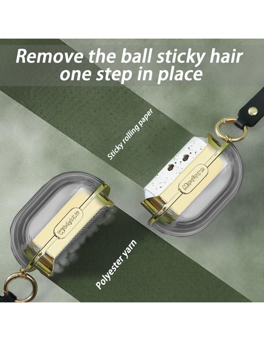 - Diseño Elegante y Estiloso: La carcasa transparente premium combinada con elegantes acentos dorados le da al rodillo quitapelusas un aspecto lujoso y moderno. La correa de mano de cuero de alta calidad añade un toque de sofisticación, facilitando su sujeción o colgado. La hebilla dorada permite una fácil sujeción a las bolsas.