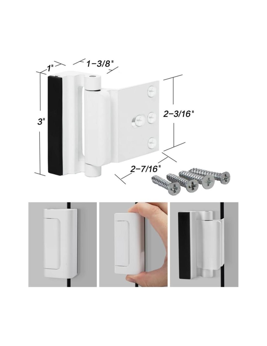 - DISEÑO FUERTE Y MANTEN TU SEGURIDAD: Diseñada para soportar 800 lbs (362,87 kg) de fuerza. La cerradura de refuerzo para puerta tiene una construcción de alta resistencia, muy sólida y segura. Instalar en la puerta ayuda a prevenir que alguien abra la puerta desde el exterior, aumentando la seguridad de tu hogar y manteniéndote a ti y a tu familia seguros