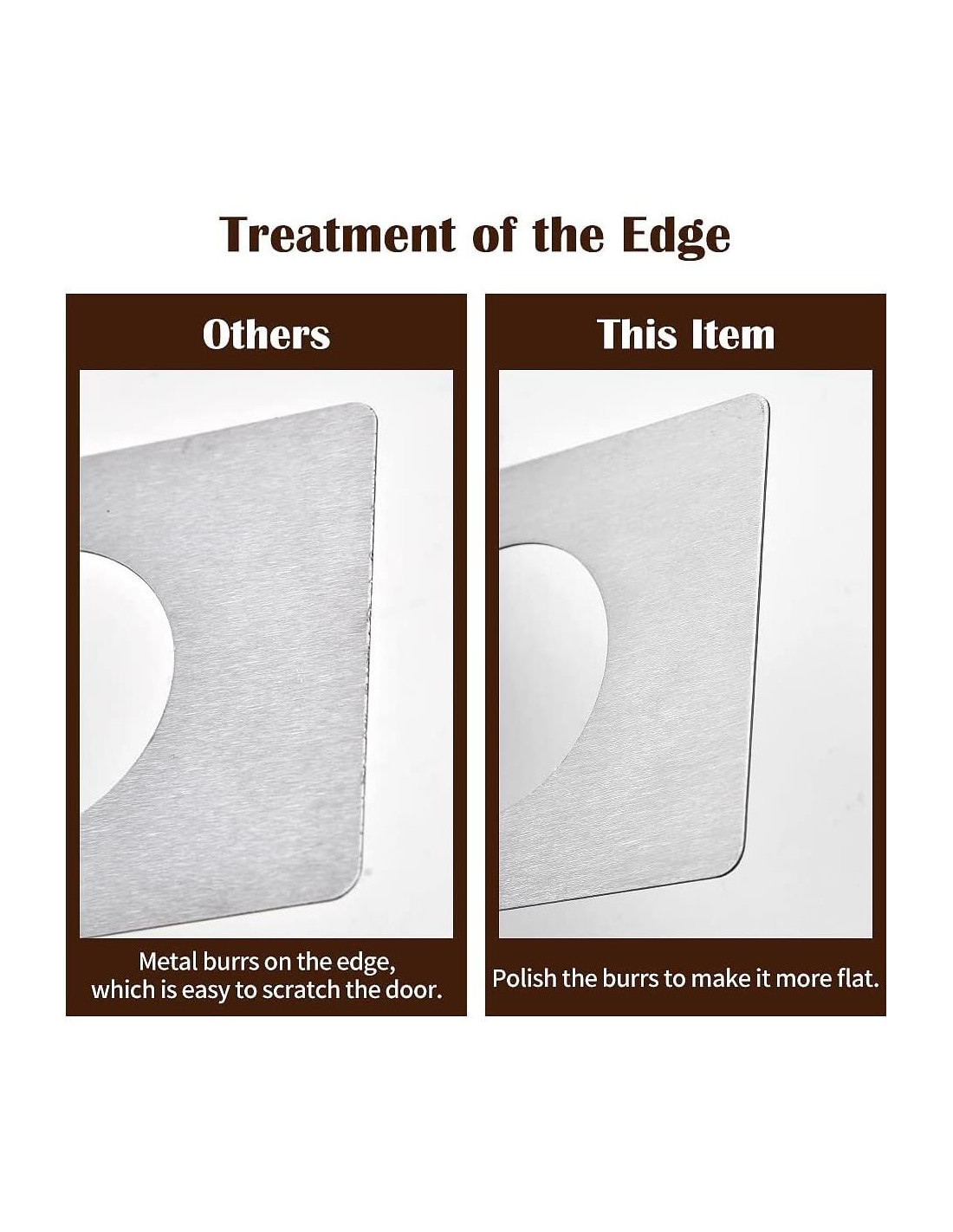 - Para qué es: Se utiliza para cubrir áreas dañadas alrededor de la cerradura de la puerta, como rasguños. Se utiliza para llenar el espacio entre la cerradura y la puerta y reforzar la cerradura suelta. Se utiliza para soportar el pomo de la puerta.