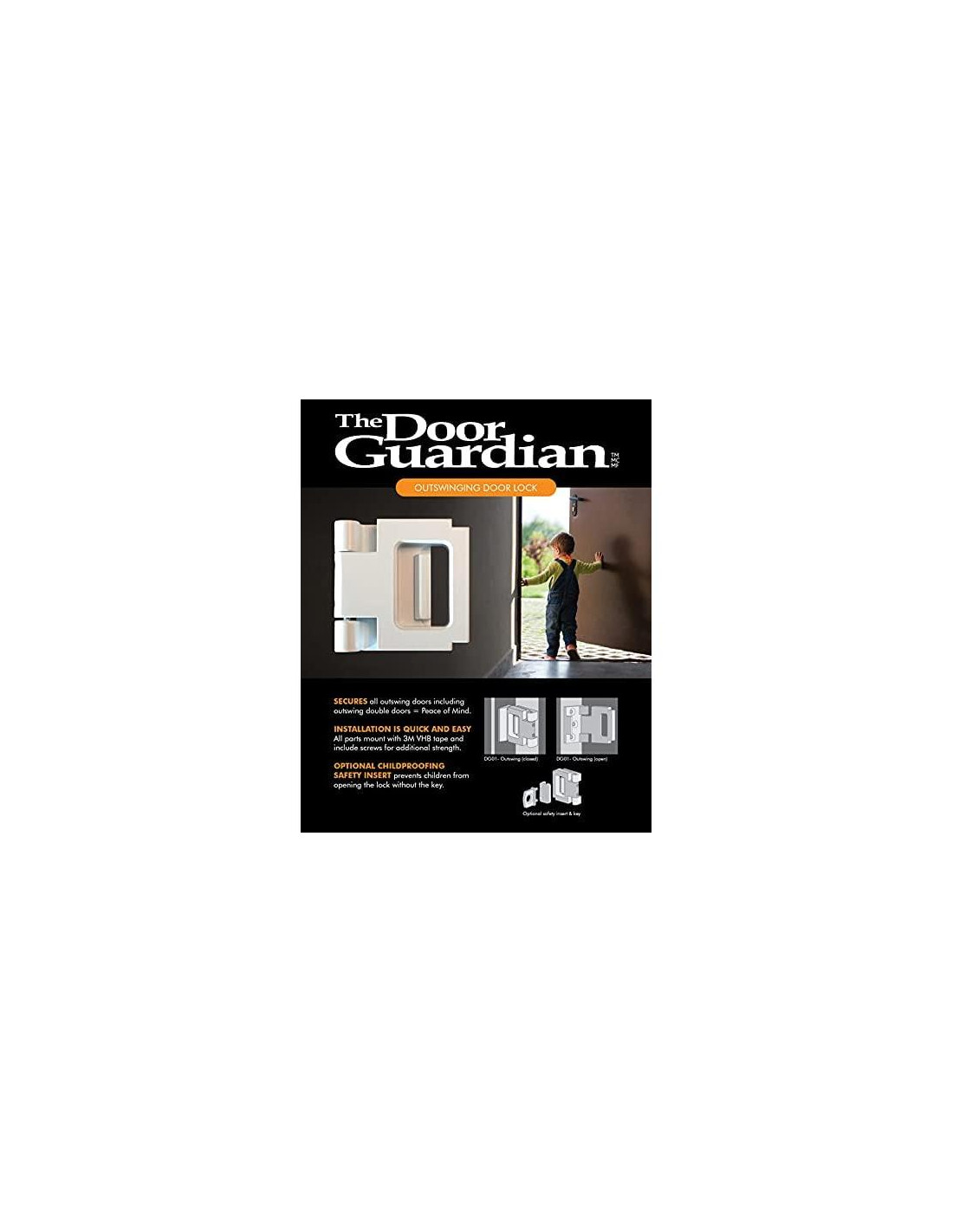 Protege tu hogar y vive con tranquilidad. La cerradura para puertas de apertura exterior Door Guardian hace precisamente eso. Nuestro dispositivo de cerradura es una solución de seguridad para el hogar asequible y efectiva. Construida con fuerza y durabilidad en mente, esta cerradura asegura y refuerza cualquier puerta de apertura exterior contra impactos de alta fuerza y resiste entradas forzadas a través de puertas exteriores.