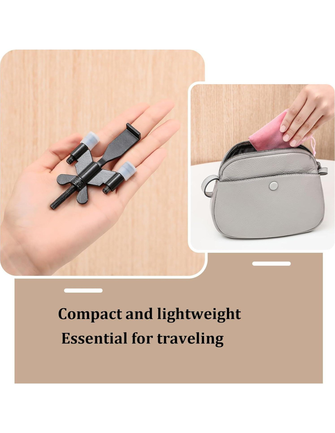 - [FÁCIL INSTALACIÓN Y LIGERO] : No se necesitan herramientas, solo coloca el pestillo en el marco de la cerradura de la puerta, cierra la puerta y aprieta los tornillos. La cerradura de seguridad para hotel viene con una pequeña bolsa, se puede poner en el bolsillo de la mochila, no ocupa espacio, pequeño cuerpo, gran función.