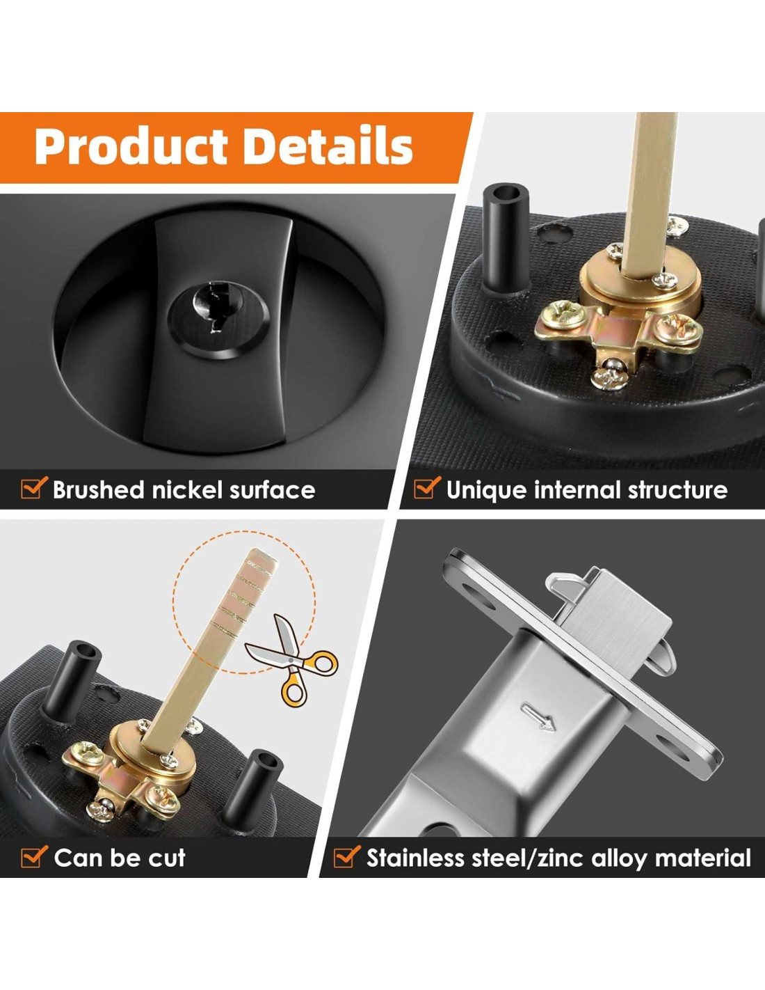 - Material del producto: aleación de zinc de alta calidad, superficie electrochapada en níquel cepillado, negro mate, resistente a la corrosión. Especificaciones: Se adapta a grosores de puerta estándar de 1 3/8 a 1 15/16 pulgadas (3.49 a 4.92 cm), y no ajustable 2 3/8 pulgadas (6.03 cm) de retroceso.