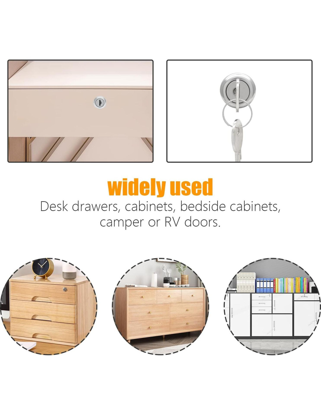 - Amplia Gama de Aplicaciones: Esta cerradura de cilindro utiliza la misma llave. Cuando compras múltiples cerraduras, las llaves son exactamente las mismas, lo que facilita su gestión y uso. Se utiliza ampliamente en cajones de escritorio, armarios, mesitas de noche, puertas de casas rodantes o RV.