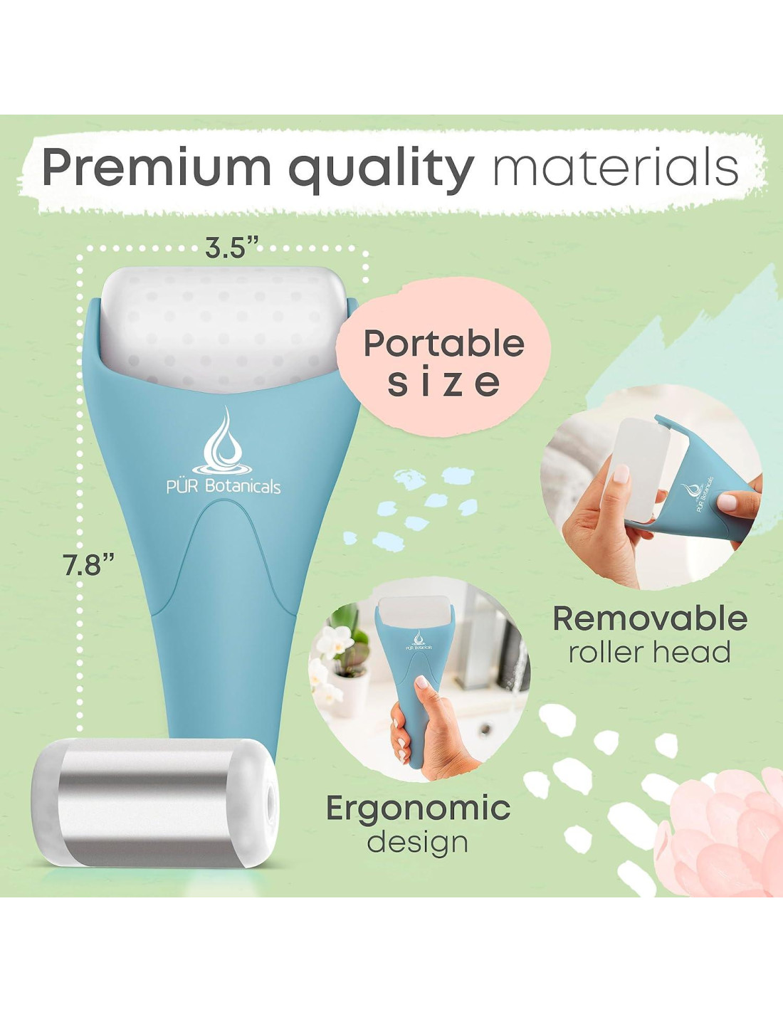- DISEÑO ERGONÓMICO PARA MANEJO FÁCIL: Nuestro rodillo de hielo para la cara con dos cabezales intercambiables es fácil de sostener y usar; Aplica debajo de tus ojos para aliviar la hinchazón ocular, o sobre tu cara para reducir el enrojecimiento y los poros