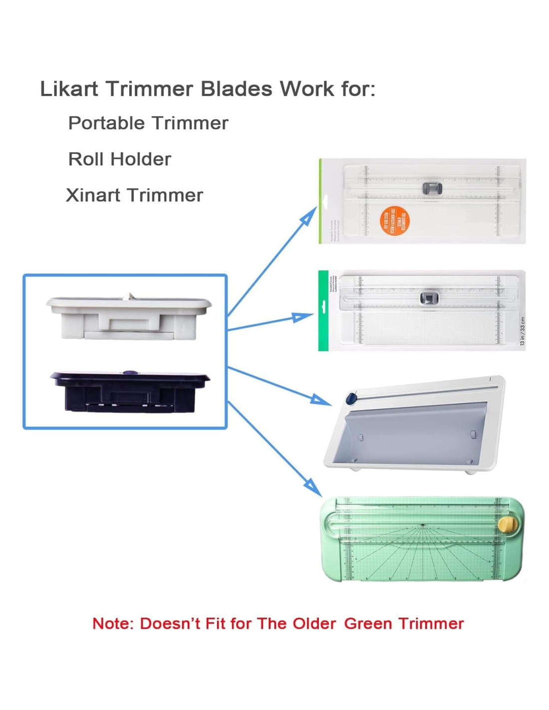 - Las cuchillas de cortadora de papel Likart son fáciles de reemplazar en la cortadora. Nuestras cuchillas de reemplazo para cortadora se adaptan perfectamente a Cortadora Portátil/Cortadora Básica/Sujeción de Rollo/Cortadora de papel xinart. NOTA: ¡No son compatibles con la cortadora verde antigua!