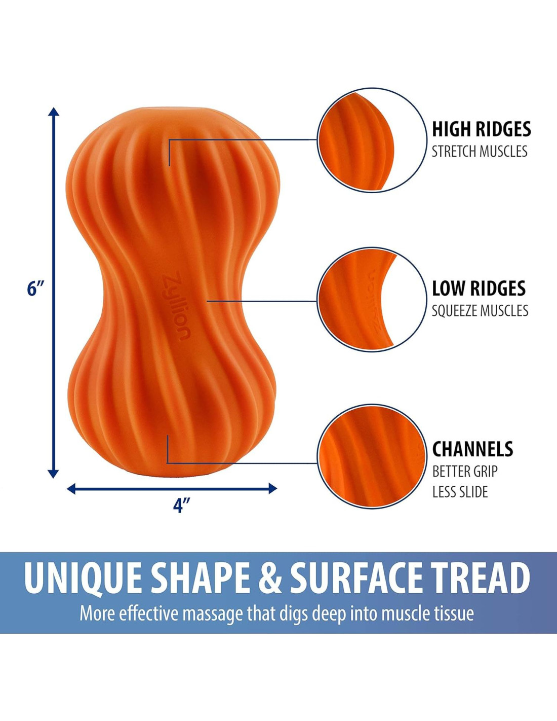 - Liberación Miofascial: A medida que ruedas sobre la superficie de la bola de masaje de maní, las crestas bajas "exprimen" los músculos y las crestas altas "estiran" los músculos para ayudar a aliviar cualquier malestar, dolores musculares y espasmos en tus brazos, espalda baja/alta, cuello y piernas