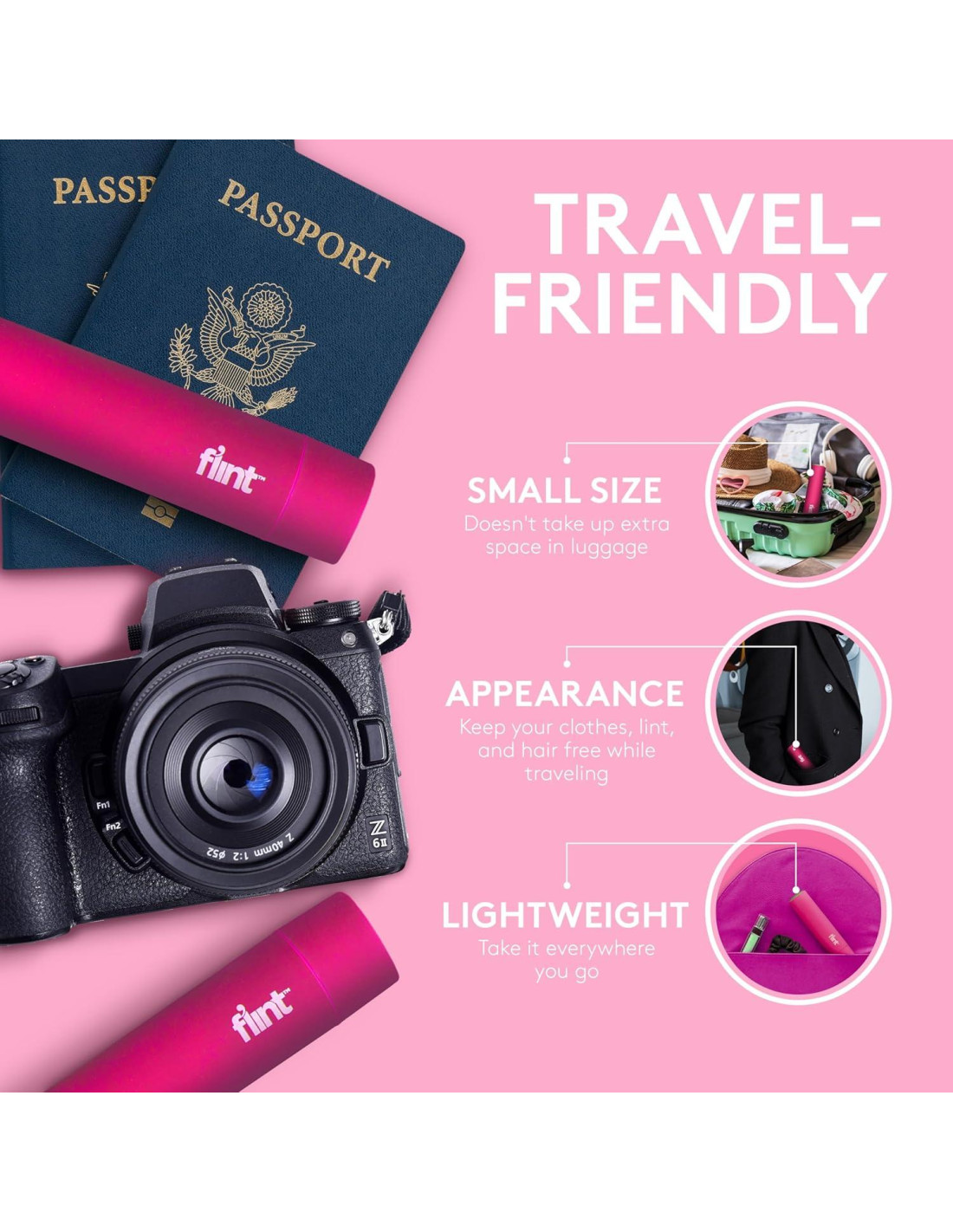 - Rodillo Quitapelusas Flint con Fácil Giro: Nuestros rodillos quitapelusas portátiles tienen un mecanismo de giro para abrir, hojas adhesivas potentes que solo se adhieren al pelo de mascotas, polvo y todo lo demás.
