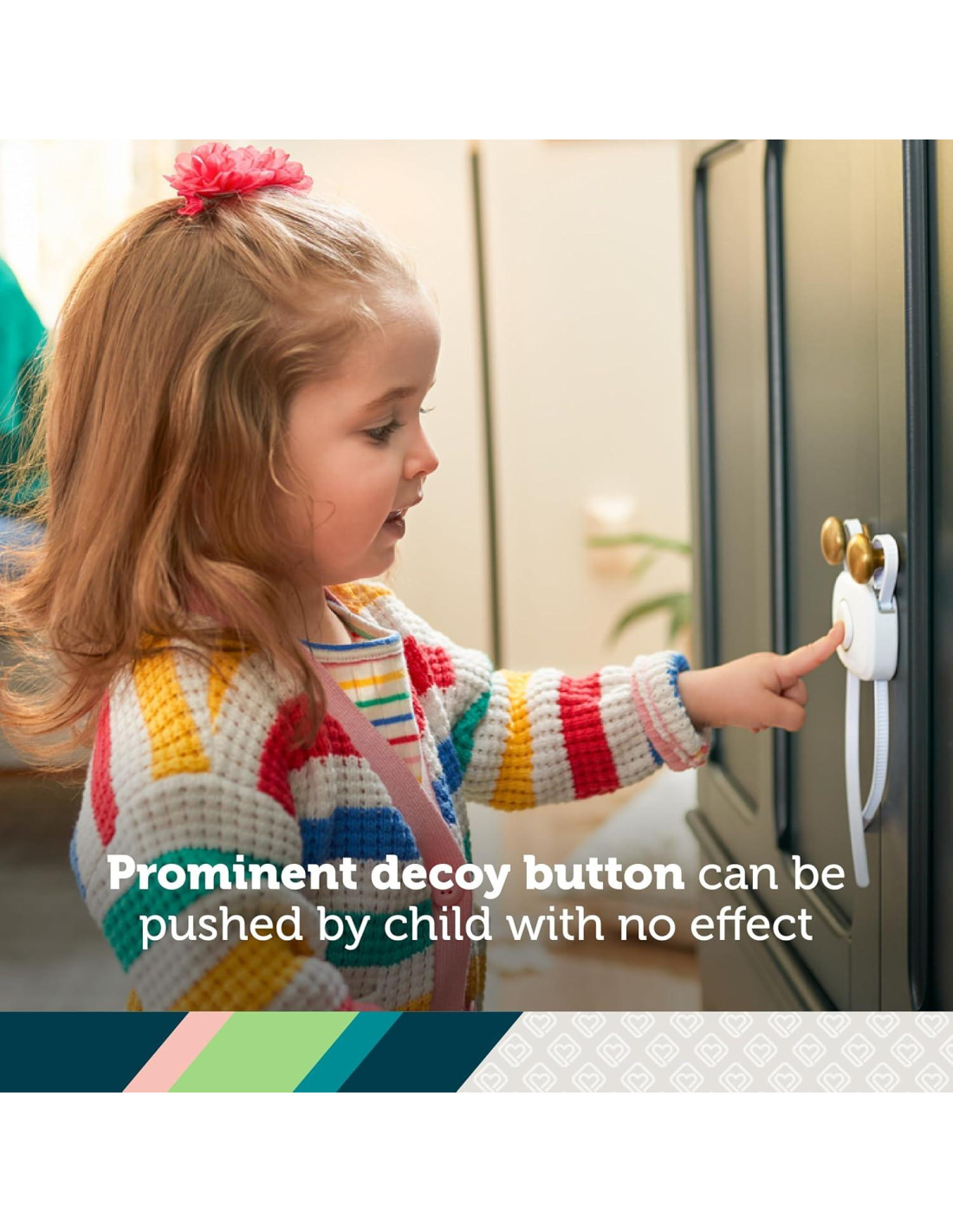 Los niños curiosos intentan acceder a todo, pero el Safety 1st OutSmart Flex Lock te ayuda a mantenerlos fuera con el primer botón de distracción. Tu hijo pensará que el botón de distracción abre la cerradura, pero presionarlo no tiene efecto. Sabes que la superficie flexible oculta el verdadero secreto para abrir la cerradura. Esta cerradura de gabinete evita que tu pequeño explorador acceda a gabinetes uno al lado del otro y se puede usar en gabinetes con perillas o tiradores. Se instala fácilmente sin necesidad de perforar. Las correas ajustables te permiten obtener un ajuste personalizado para gabinetes con herrajes de hasta 20.32 centímetros de distancia. Para períodos de no uso, esta cerradura de gabinete cuelga convenientemente fuera del camino, pero permanece cerca para cuando se necesite nuevamente. ¿Tienes más preguntas sobre cómo hacer que tu hogar sea seguro para tu niño curioso? Estamos aquí para ayudarte con consejos de seguridad en el hogar, formas fáciles de prevenir riesgos comunes y una gama completa de equipo de seguridad.