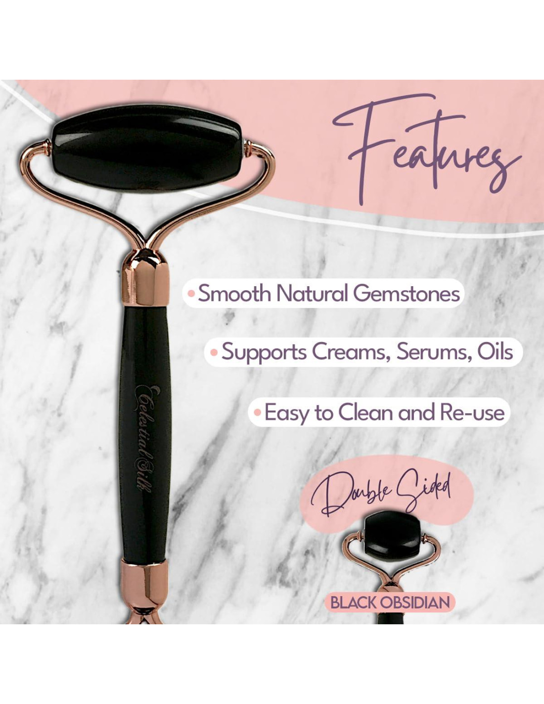 - Rodillo de Obsidiana Negra Rejuvenecedor - Este rodillo facial de spa utiliza piedras preciosas de obsidiana negra 100% naturales que se deslizan suavemente sobre tu piel debajo de los ojos, a lo largo de la mandíbula y sobre las mejillas o la frente para mejorar y restaurar una piel suave, saludable y radiante.