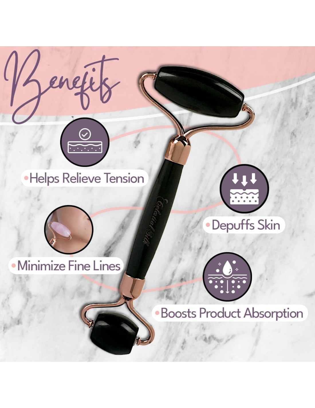 - Nuestro Rodillo Facial de Obsidiana Negra Se Siente Frío Contra la Piel - El rodillo facial masajea y estimula el drenaje linfático, y provoca la contracción de los vasos sanguíneos, lo que reduce la apariencia de líneas finas y hinchazón.