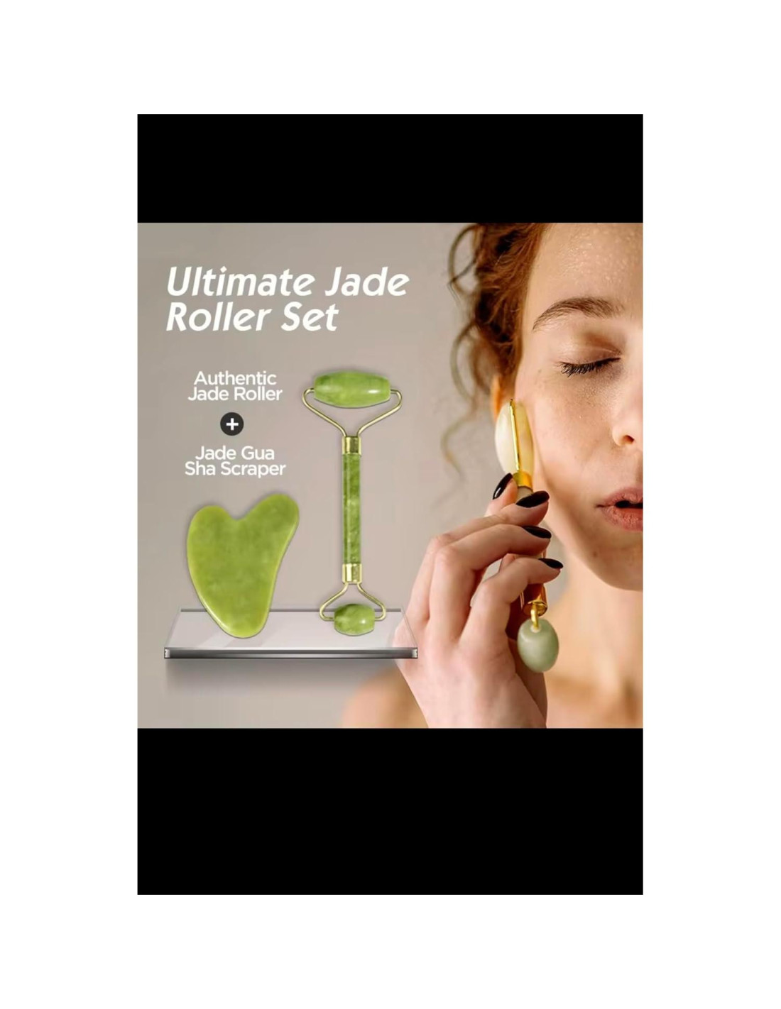 - MATERIAL PREMIUM: Juego de rodillo facial de jade natural y herramienta gua sha con construcción de piedra genuina y elegantes acentos de metal dorado