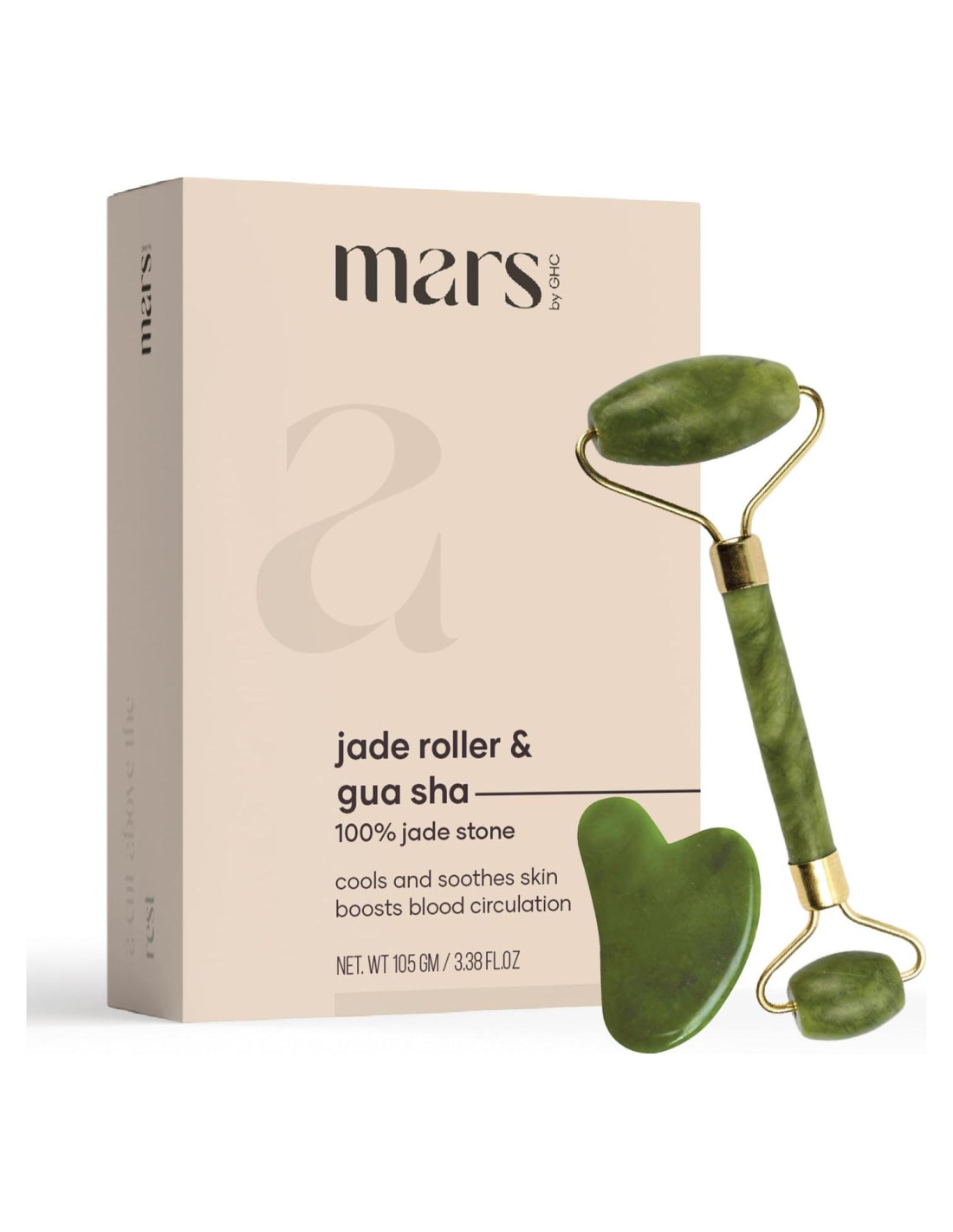 Elimina las imperfecciones de la piel de manera natural con el Rodillo de Cuarzo Rosa Original y el Set de Gua Sha de mars by GHC. Nuestro rodillo y herramientas de raspado Gua Sha están hechos de material de Cuarzo Rosa 100% auténtico, utilizado por expertos en cuidado de la piel de Asia antigua. El rodillo tiene dos lados, uno largo y uno corto, para facilitar el enfoque en áreas problemáticas. El mango está hecho de una aleación de zinc que es resistente, duradera y resistente a la oxidación y la corrosión. Dentro de cada rodillo hay un inserto de silicona que promueve un rodado más suave sin el sonido chirriante. Tanto el rodillo como el raspador Gua Sha son seguros para usar en la frente, alrededor de los ojos y la boca, en las mejillas, nariz, mentón, mandíbula y área del cuello. Mejoran la producción de colágeno, el flujo sanguíneo y la estimulación y drenaje del sistema linfático. Estas herramientas de piedra de jade también ayudan a aliviar el dolor, la presión, la hinchazón y el estrés.