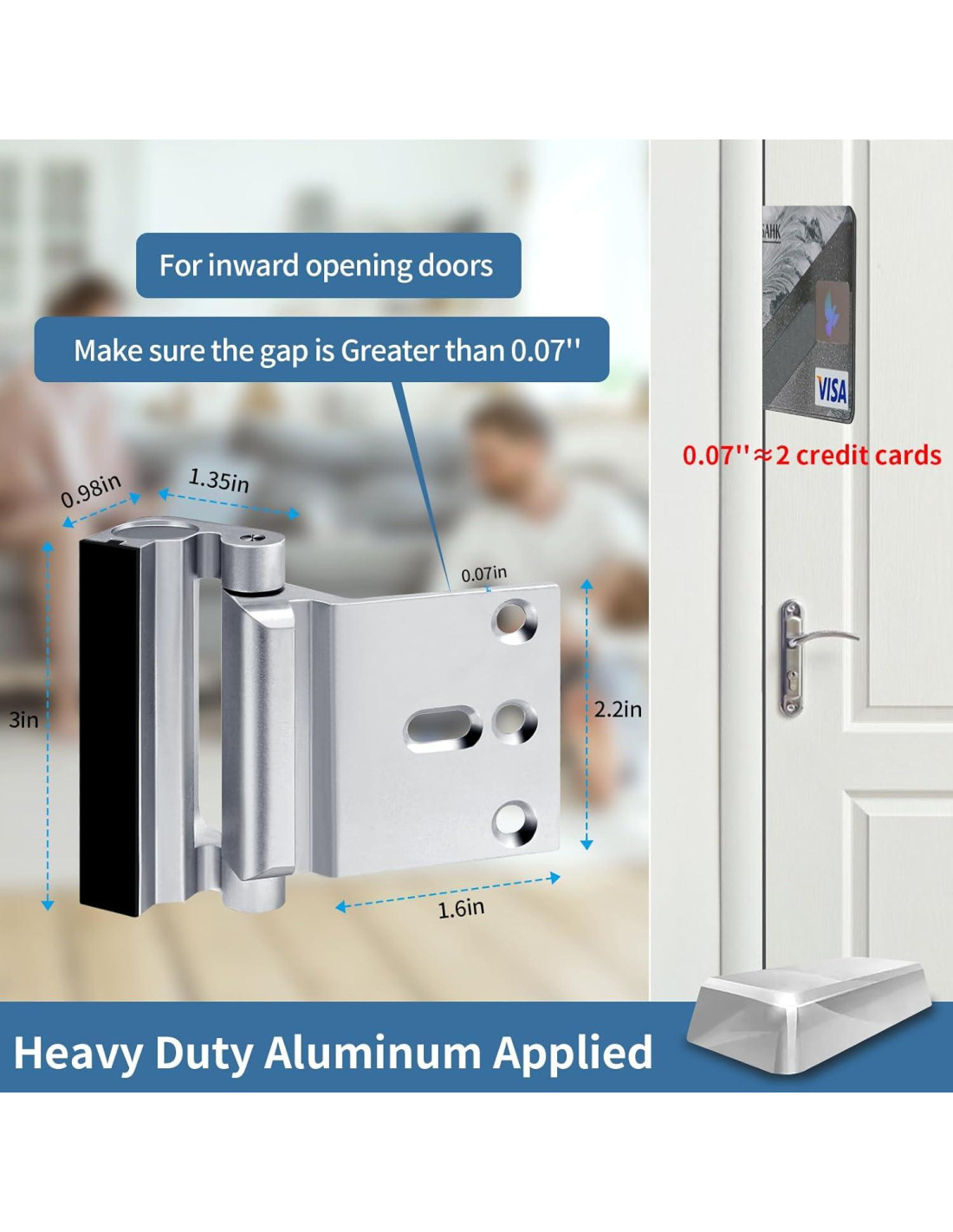 - A prueba de niños y resistente a manipulaciones: Adoptando un diseño de resorte, esta cerradura extra para puerta desde el interior es lo suficientemente resistente para prevenir entradas no autorizadas y fácil de montar fuera del alcance de los niños. A prueba de niños y resistente a manipulaciones, lo que la convierte en una cerradura de seguridad para puerta delantera perfecta para niños. Nota: mide amablemente las dimensiones de tu puerta (espacio > 0.07") antes de la compra.