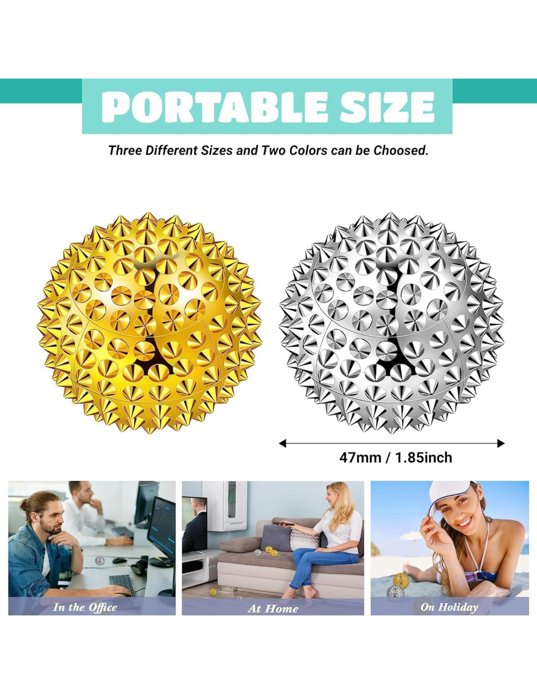 - Varias Opciones: Tenemos tres juegos para elegir, cada juego contiene dos bolas de masaje, puedes elegir el diámetro correspondiente de las bolas magnéticas según tus necesidades, bolas pequeñas de 32 mm, bolas medianas de 47 mm, bolas grandes de 56 mm.