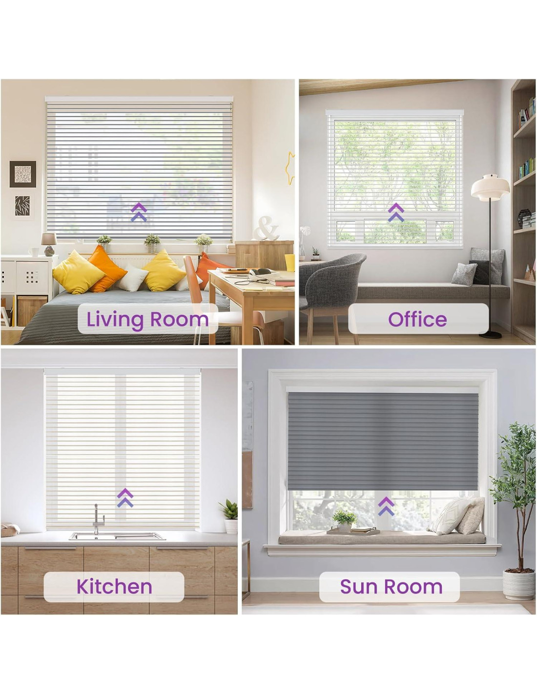 - Diseño Doble Sheer: Combina el control de luz de una persiana, la función de una sombra y la suavidad de las telas sheer filtrantes de luz. Las lamas de tela de oscurecimiento ajustable al 85% están suspendidas entre dos telas sheer. Filtra la luz mientras mantiene la privacidad. Las sombras filtrantes de luz Astomi son ideales para sala de estar, patio, sala de sol y oficina en casa.