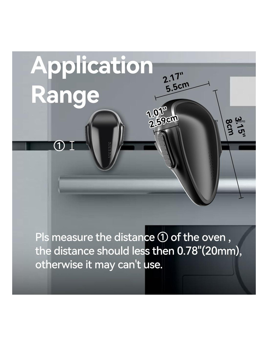- LEA ANTES DE COMPRAR---Debido a los diferentes diseños de hornos, el horno aún puede abrirse de 1-2 cm bajo condición de bloqueo. Por favor, mida la distancia de la puerta y el horno, la distancia debe ser menor a 0.78''(20mm), la distancia entre los dos botones debe ser más de 4.4"(11cm), de lo contrario no se puede usar. ADVERTENCIA: Si su horno está en posición de trabajo, por favor cuide bien a sus bebés, nuestros productos no pueden supervisar a los adultos.