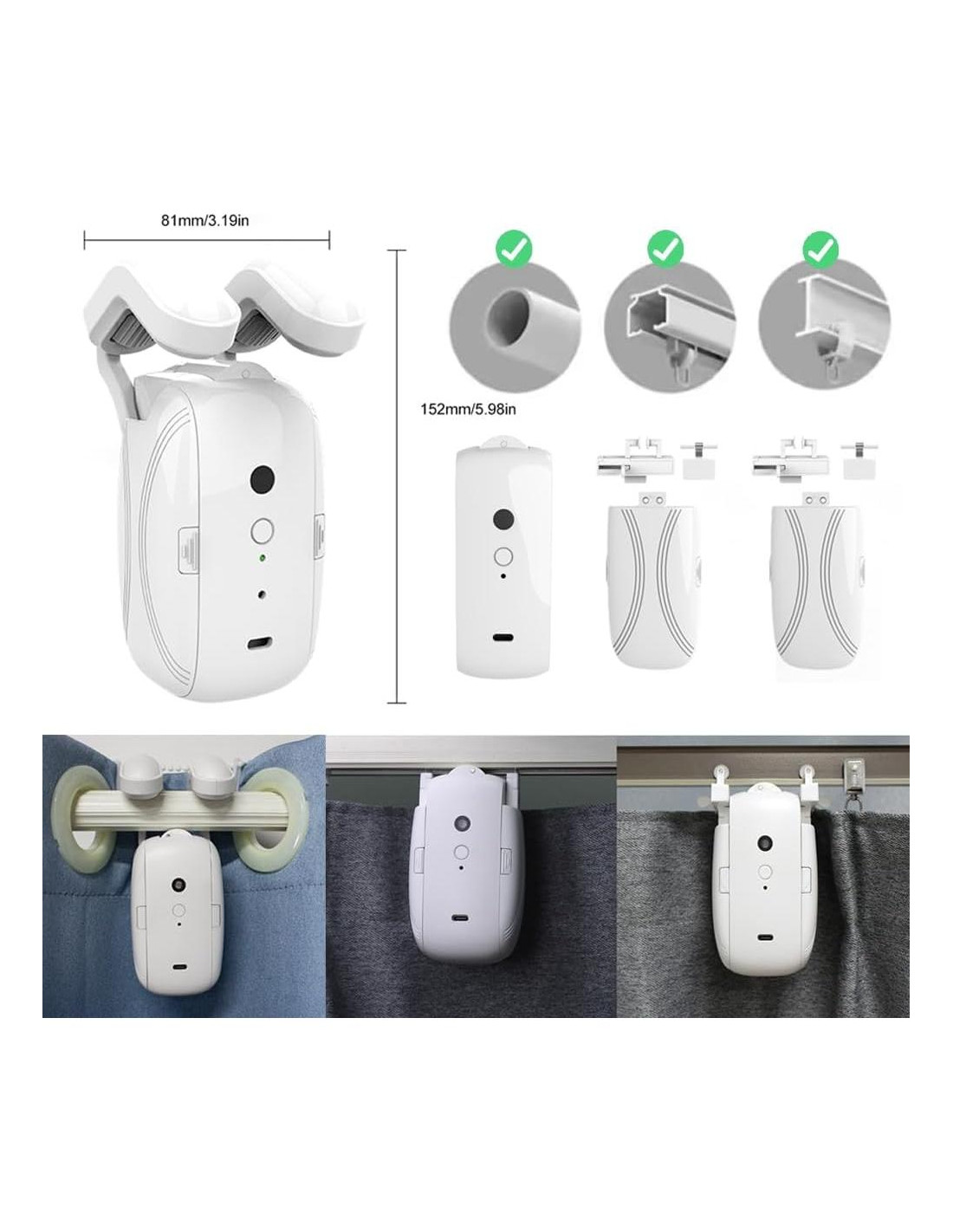 - [Nota 2] : La página de detalles del producto y la imagen tienen los requisitos específicos y precauciones para la instalación, por favor lee cuidadosamente antes de comprar para confirmar si es adecuado para tu cortina. El paquete incluye: 1 x Abridor de Cortinas; 1 x Puente WiFi. (Nota: El abridor de ventana no soporta operación de control remoto, el control remoto no está incluido en el paquete)