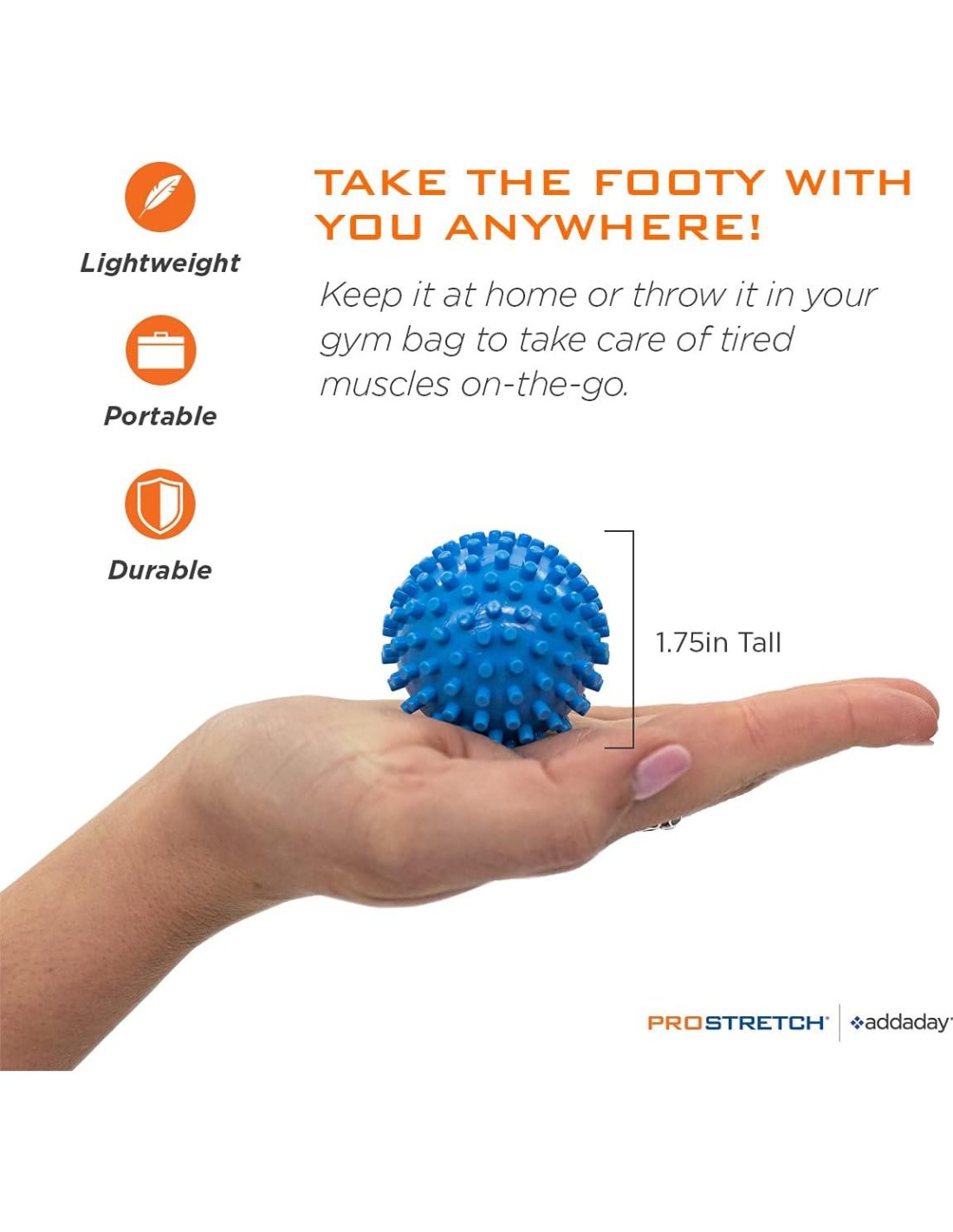 El ProStretch Footy cuenta con pequeñas protuberancias que alcanzan la fascia plantar con más facilidad, proporcionando una mayor intensidad para un masaje más agresivo y específico. Esta bola de masaje llega a la fascia plantar para aliviar tanto la tensión muscular como la soreness. Sus pequeñas perillas te ayudan a llegar profundamente a la fascia, convirtiéndola en la herramienta de masaje perfecta para el alivio de la fascitis plantar. Usa el ProStretch Footy para aliviar puntos gatillo y soreness/tensión muscular. El Footy está diseñado para masajear profundamente tus músculos en lugar de rodar solo por la superficie. Esta bola de masaje proporciona un masaje de tejido profundo en áreas específicas, pero se puede usar en todo tu cuerpo, brindándote la experiencia de masaje que has estado buscando. El ProStretch Footy está convenientemente diseñado para llevarlo contigo a cualquier lugar, convirtiéndose en tu compañero mientras enfrentas todos esos nudos musculares y soreness que simplemente no desaparecen. ¡No querrás perderte este!