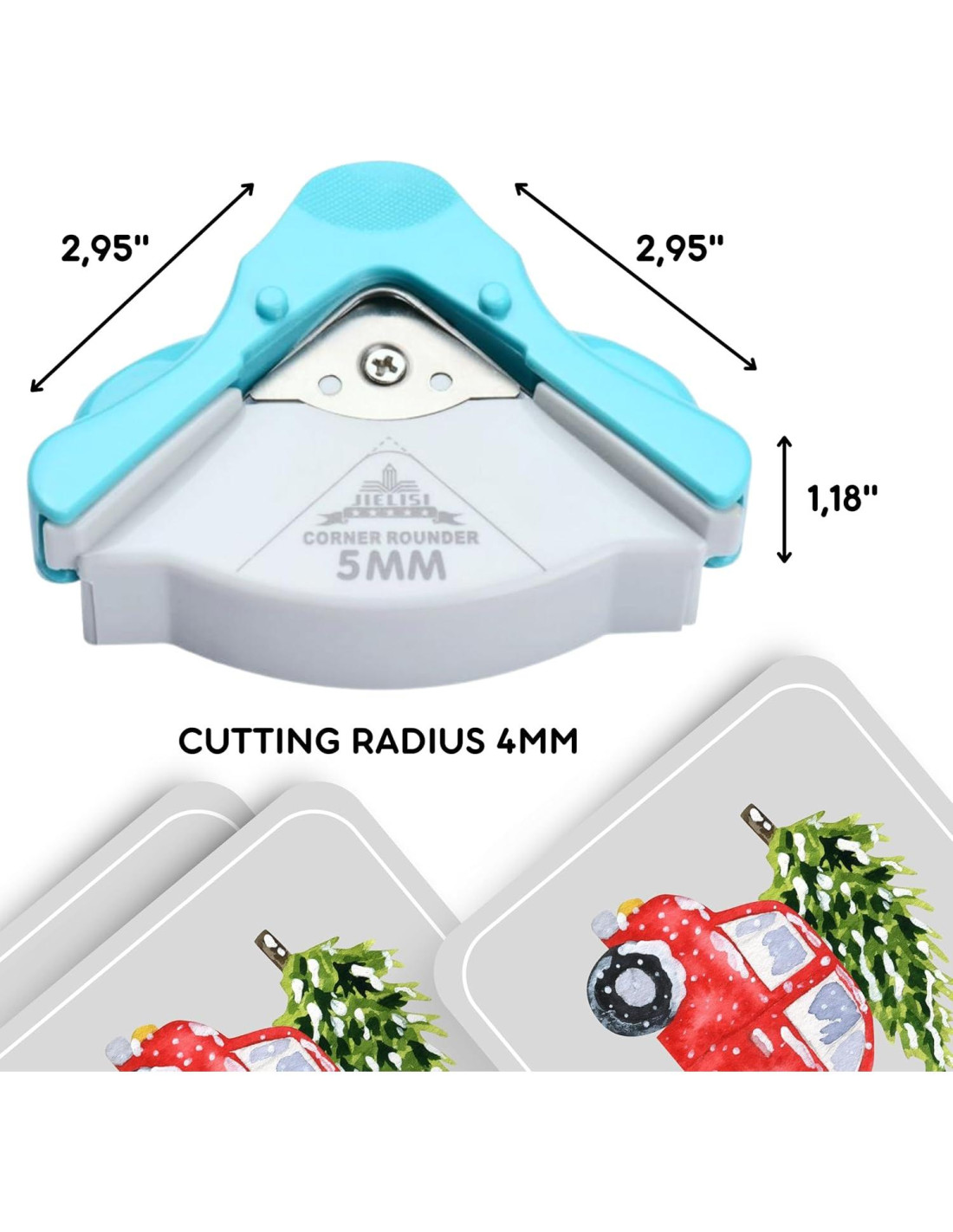 - Este cortador de esquinas redondeadas está hecho de materiales de alta calidad con cuchilla de acero inoxidable - solo presiona el mango para cortar la esquina. La herramienta de manualidades de esquinas redondeadas tiene una altura de 3.48 cm (1.37 pulgadas) y radio de 7.62 cm (3 pulgadas). Experimenta la manualidad sobre la marcha con nuestro compacto perforador de esquinas de papel azul, perfecto para necesidades de manualidades portátiles