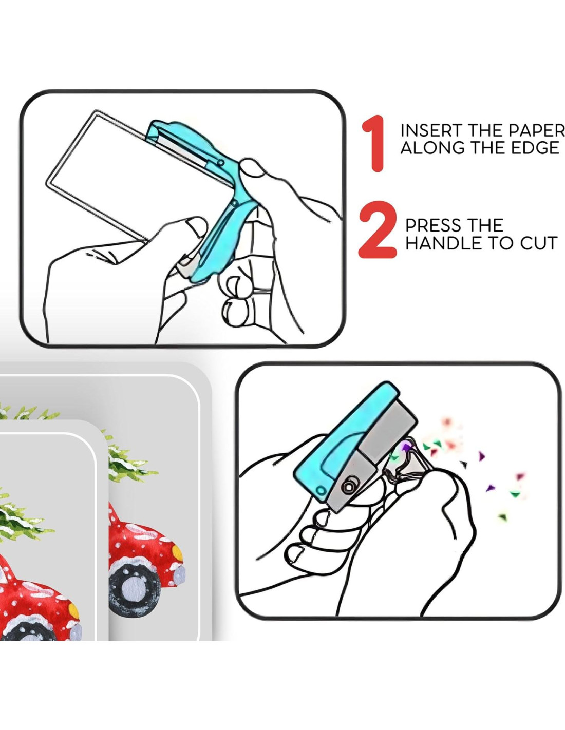 - Obtendrás un perforador de papel azul para crear formas para documentos, cartones, fotos, papel, etc. Este cortador de esquinas de papel satisfará tus necesidades de manualidades y oficina. El perforador de esquinas es una herramienta simple de aplicar y no lastimará tu mano al usarlo