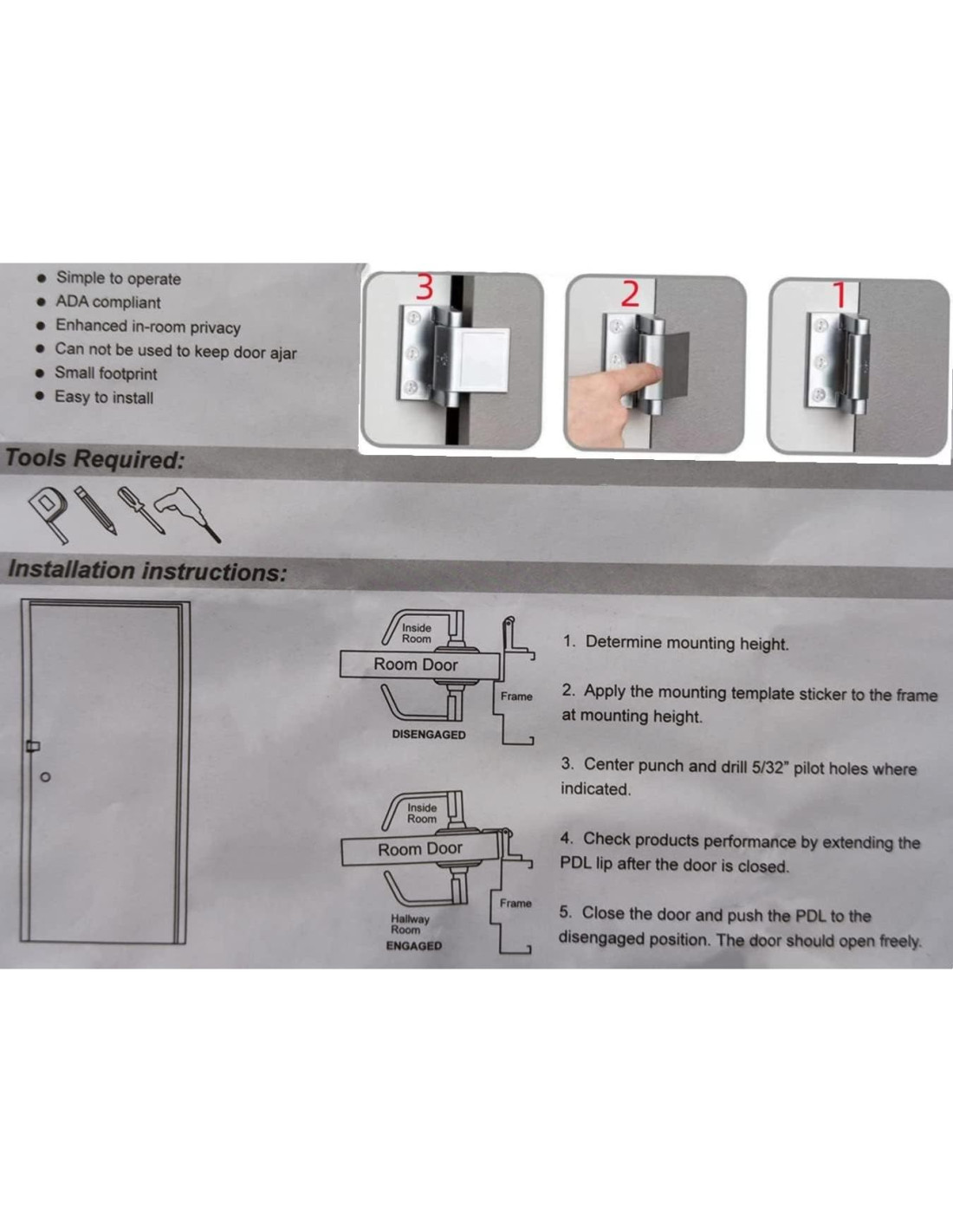 - Esta cerradura de puerta te proporciona seguridad y privacidad adicionales. Te protege y evita que personas no autorizadas entren, incluso con una llave o violencia, la puerta no puede abrirse desde el exterior. La cerradura de seguridad tiene un cierto espacio de seguridad y también actúa como ventilación para mantener el aire interior fresco.