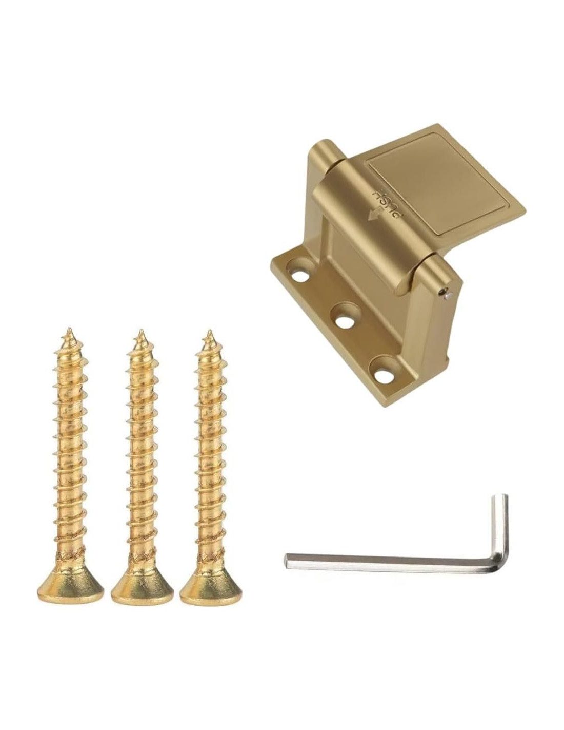 Peso neto del producto individual (excluyendo tornillos): 12.5 onzas (354.37 gramos) Color del producto: dorado Materiales: Acero inoxidable 304 de alta calidad Incluye paquete: 2 x La cerradura de seguridad de la puerta 2 x Llave hexagonal pequeña 6 x Tornillo de acero inoxidable de 45 mm (1.77 pulgadas) Consejos amables: La imagen tiene instrucciones de instalación del producto. El tamaño del producto de la cerradura reforzada se muestra en la figura