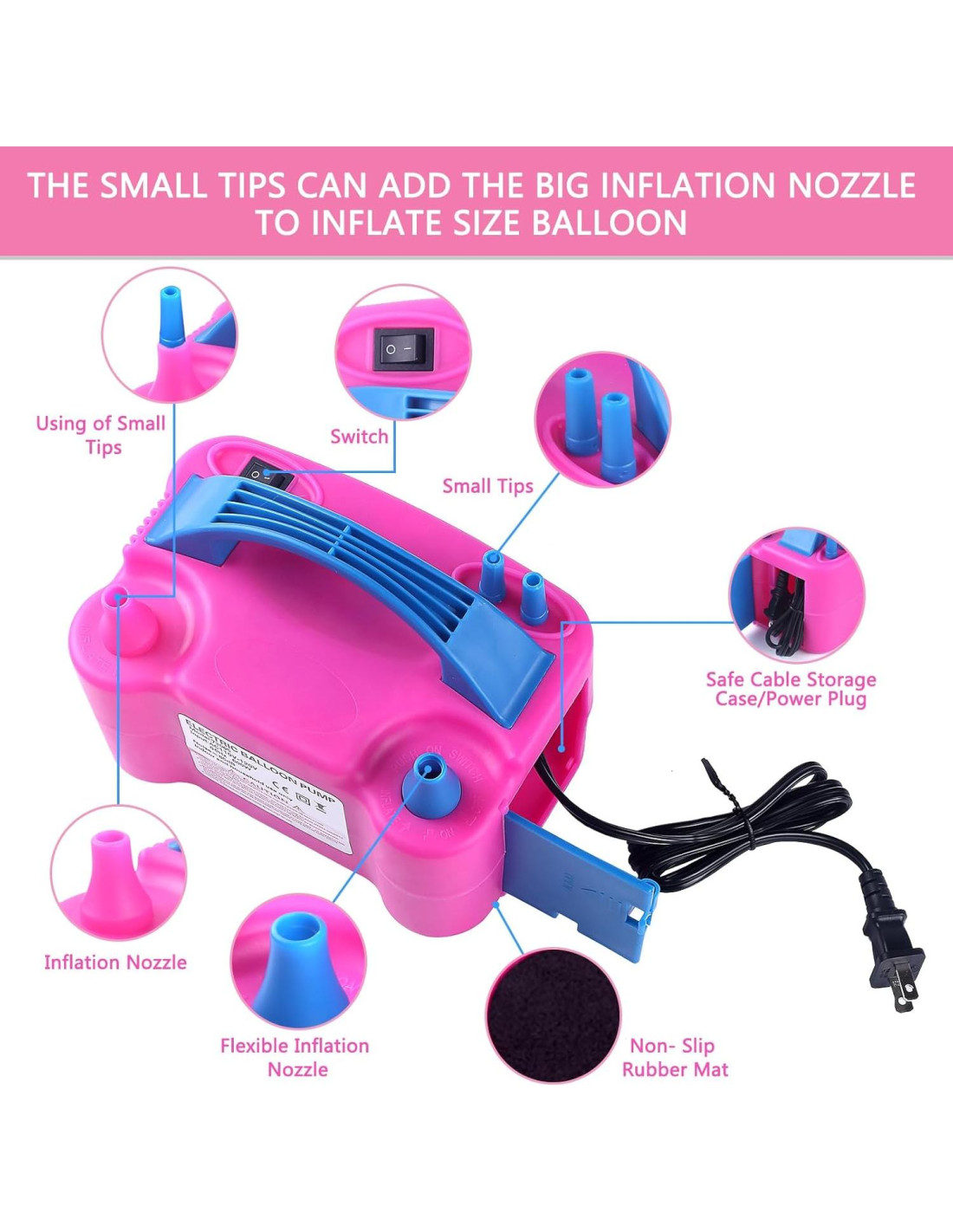 - [2 Tamaños de Boquilla] - Infle globos de diferentes tamaños gracias al práctico diseño de doble boquilla. Simplemente conecte su globo y elija su modo de inflación. Esta bomba de globo eléctrica se adapta a globos de látex y globos decorativos, no es adecuada para globos mágicos de cola larga o globos de animales. Doble bomba, bomba de aire para globos