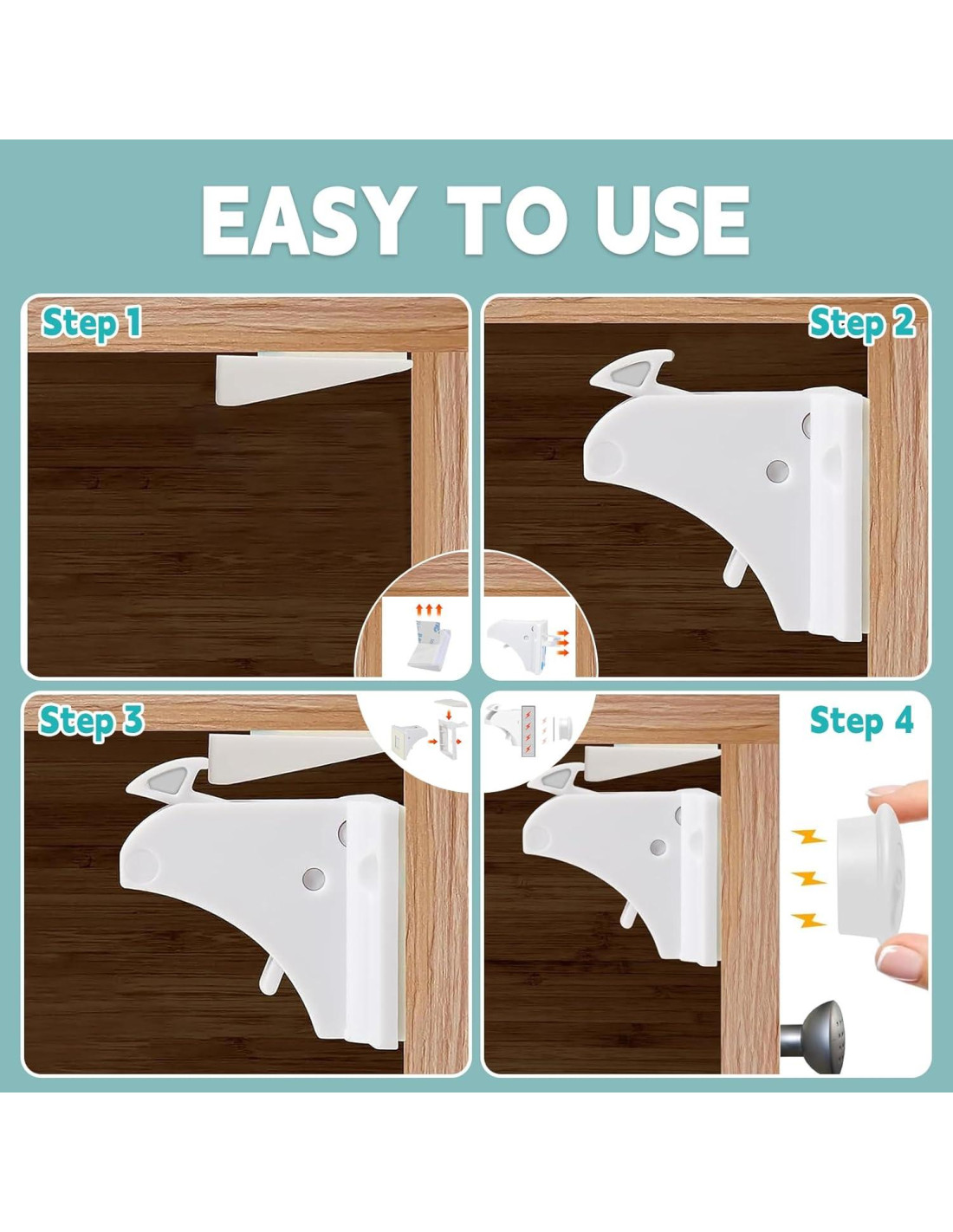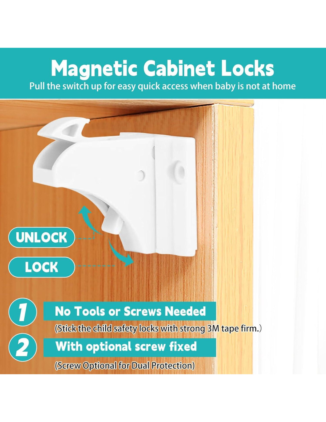 - Cerraduras magnéticas para gabinetes Instalación Fácil: ¡Instalar cerraduras para gabinetes es muy fácil! Adhesivo 3M para Gabinetes y Cajones No se requieren herramientas ni perforaciones. Simplemente adjunte las cerraduras en el interior de sus gabinetes y active la llave magnética para una protección instantánea y sin complicaciones.