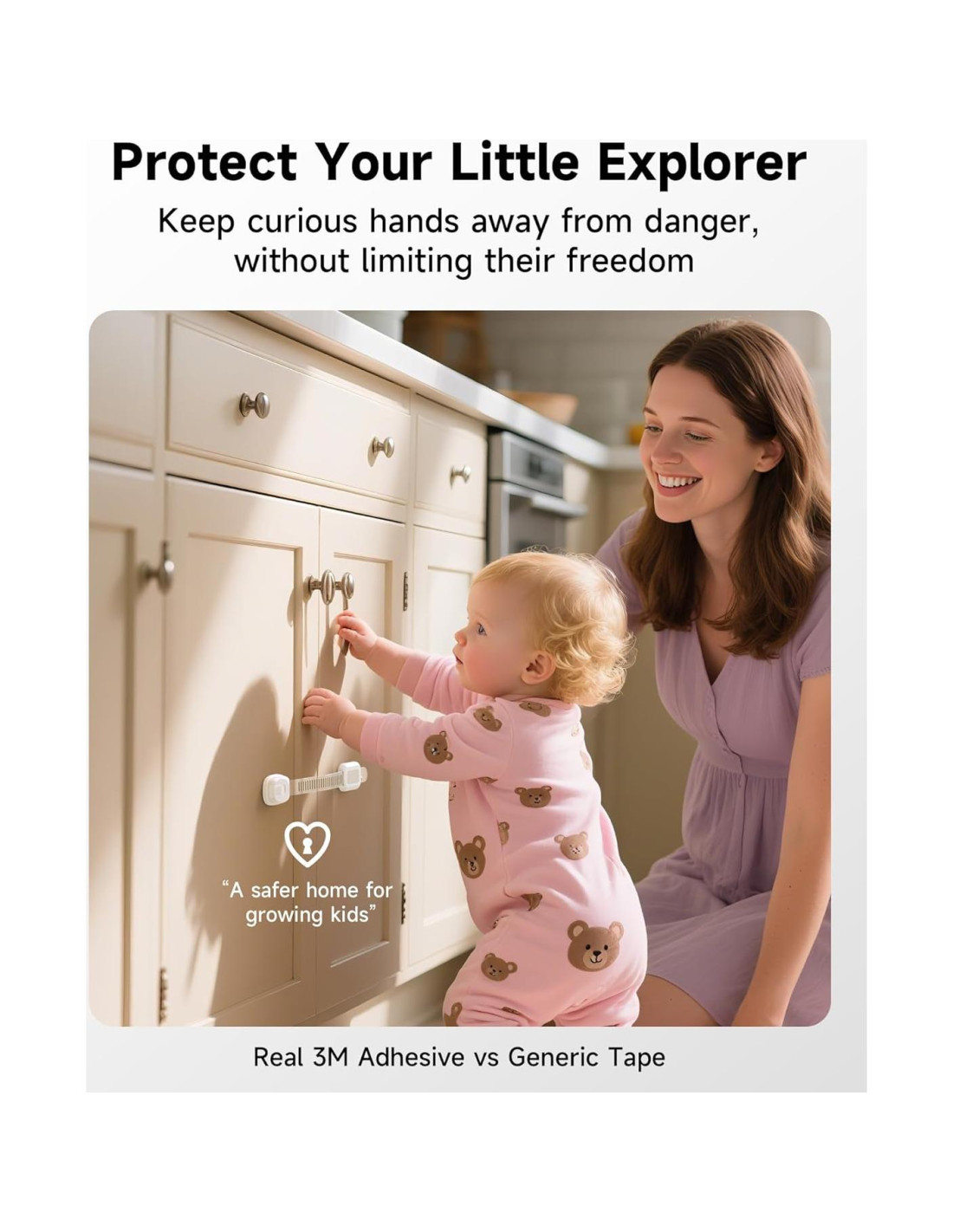 - Instalación fácil, sin taladro: ¡No se requieren herramientas ni perforaciones! Simplemente despega y pega el adhesivo 3M para un agarre fuerte y seguro en cualquier superficie plana, haciendo que la protección para bebés sea rápida y sin complicaciones