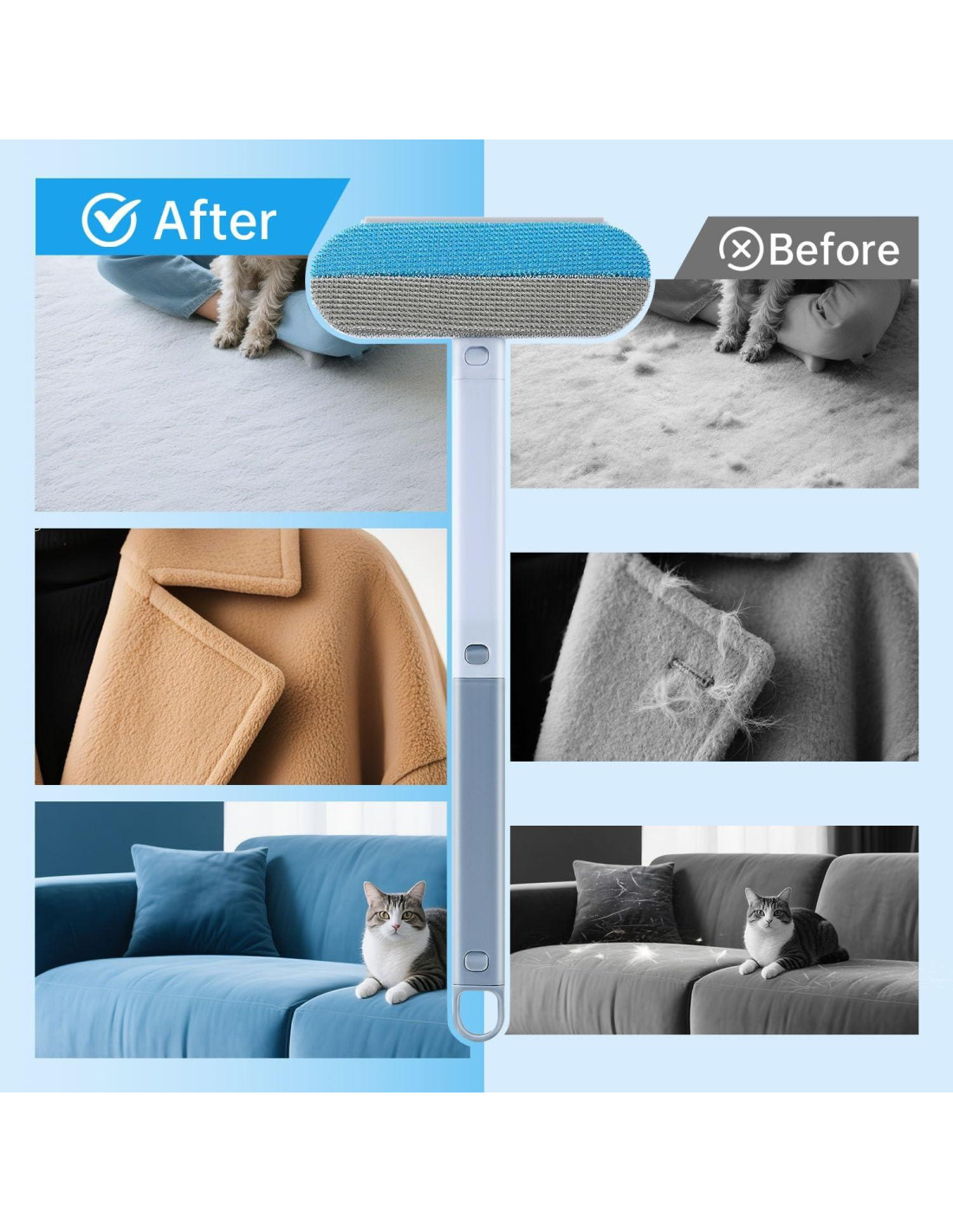 - Quitapelos para Mascotas Eficiente: Este cepillo de doble acción elimina rápidamente el pelo de mascotas de sofás y muebles. Recoge sin esfuerzo el pelo de perros y gatos con su innovador diseño de cabeza de cepillo