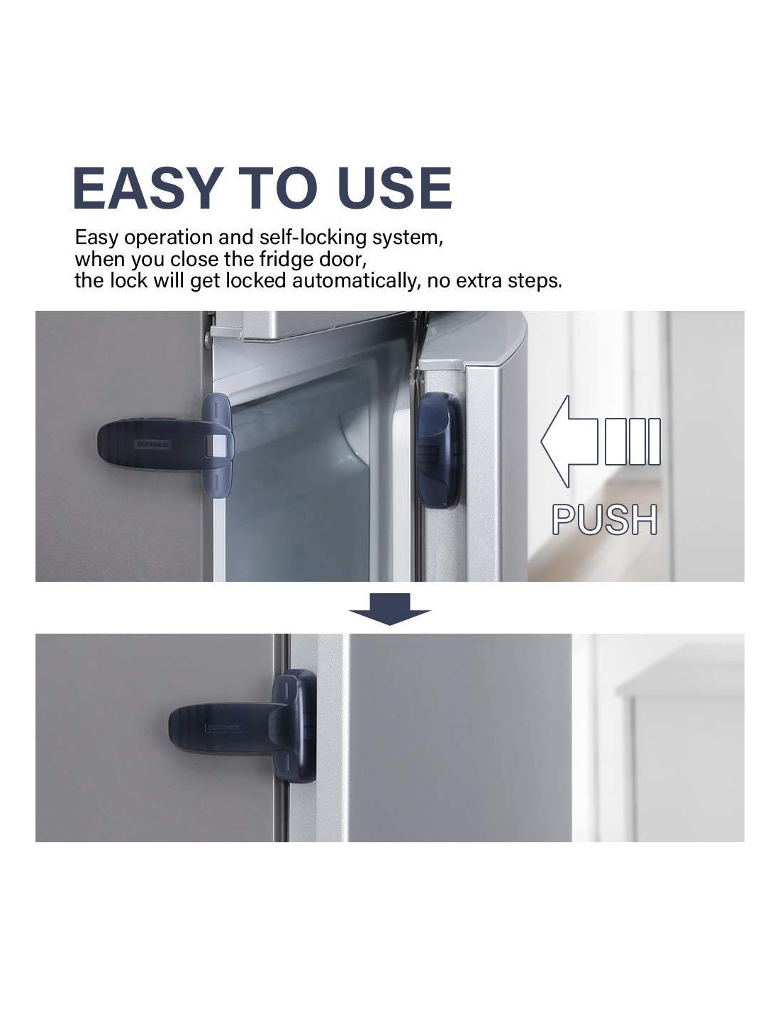 - Fácil Instalación y Uso---Con cinta pre-adhesiva en la cerradura del refrigerador, lo que los clientes necesitan hacer es despegar las cintas y pegarla en el lugar donde desean usarla. Operación fácil y sistema de auto-bloqueo, cuando cierras la puerta del refrigerador, la cerradura se bloqueará automáticamente, sin pasos adicionales.