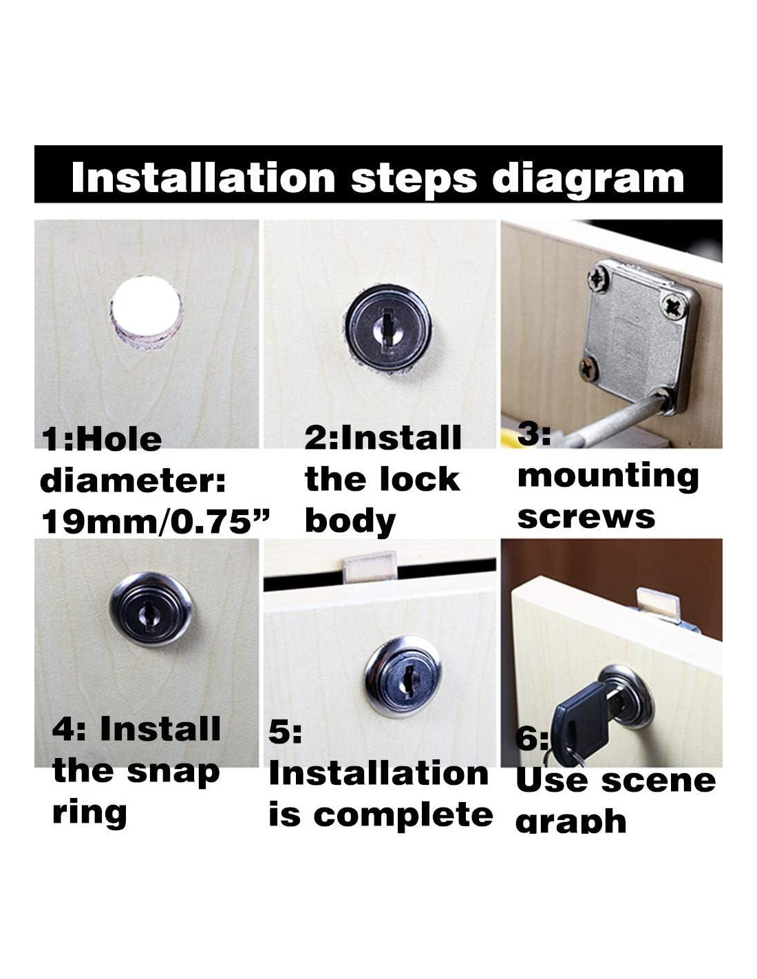 - Cerradura de Cajón, Este Producto es Adecuado para Panel de Puerta de 17 mm-22 mm, Tamaño de Diámetro de Perforación (19 mm / 0.75 pulgadas).