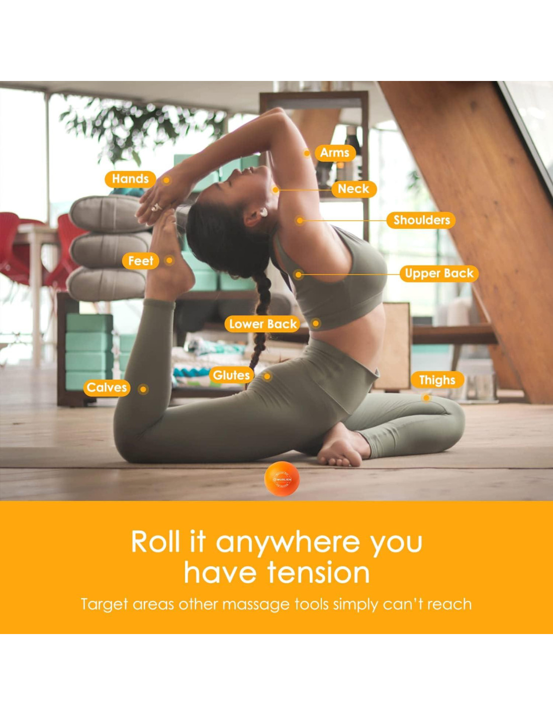 - La bola de lacrosse MURLIEN ofrece una amplia gama de usos y beneficios, desde automasaje; liberación miofascial; tejido profundo y masaje de puntos gatillo, todos estos trabajan juntos para ayudar a aliviar la tensión de músculos cansados y adoloridos, promoviendo la relajación y reduciendo la rigidez en los nudos del cuerpo.