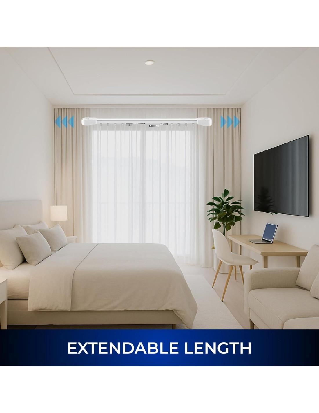 - [LONGITUD EXTENSIBLE Y MOVIMIENTO] Se extiende hasta 10 pies 9 pulgadas (3.3 m) con colocación de motor ajustable para aperturas de centro a lados o de lados a centro, adaptándose perfectamente a tu preferencia.