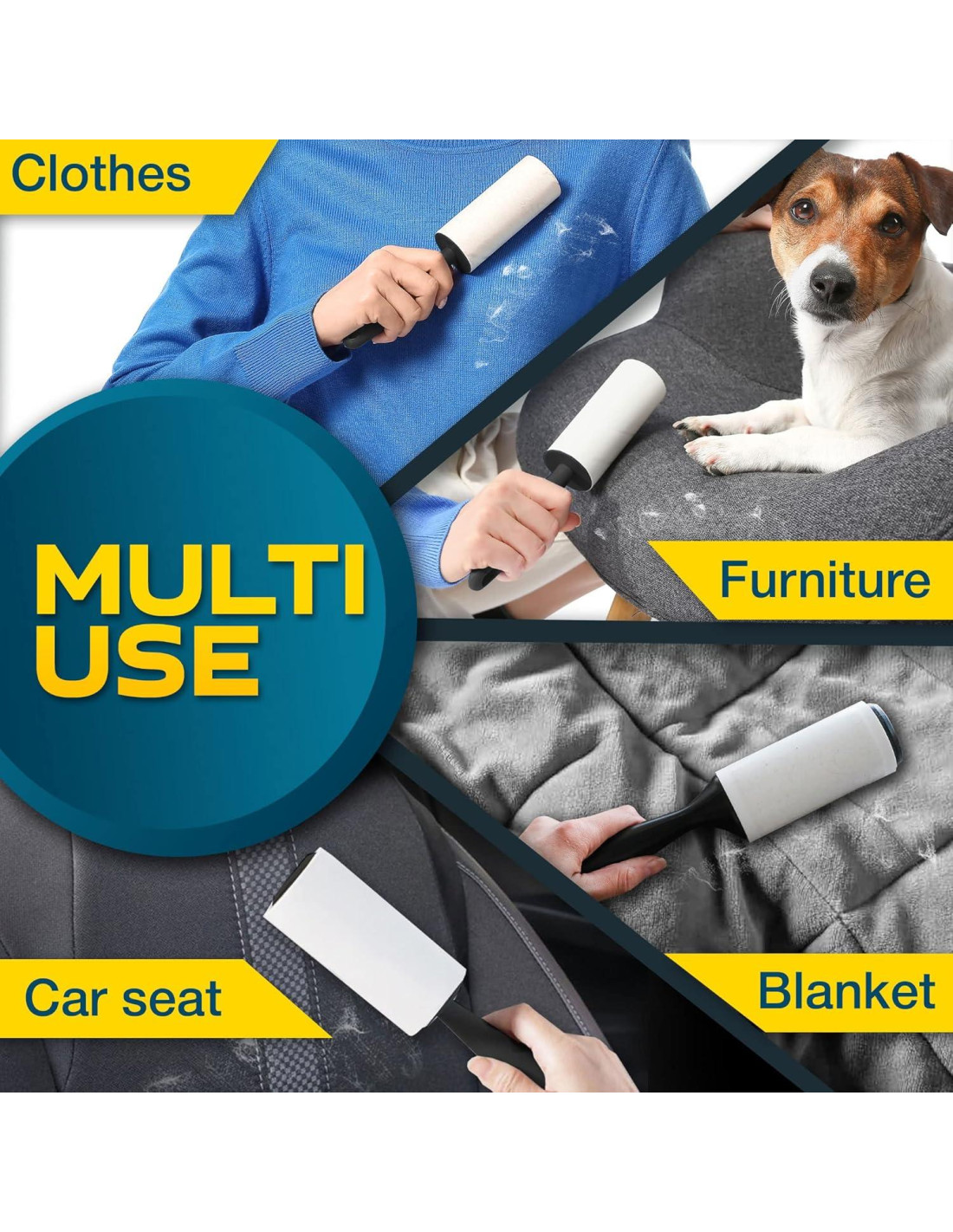 - Uso múltiple: este paquete de rodillos para pelusa será un asistente perfecto en tu hogar, coche y oficina. Puede abordar todo, desde cortinas hasta asientos de coche, y cualquier cosa intermedia. Efectivo para ropa, muebles, sofás, alfombras, sábanas, etc. ¿El pelo de tu mascota se adhiere a los muebles y la ropa aunque lo cepilles todos los días? ¡Nuestro rodillo para pelo de perro y gato finalmente te ayudará a lidiar con la situación del pelaje!