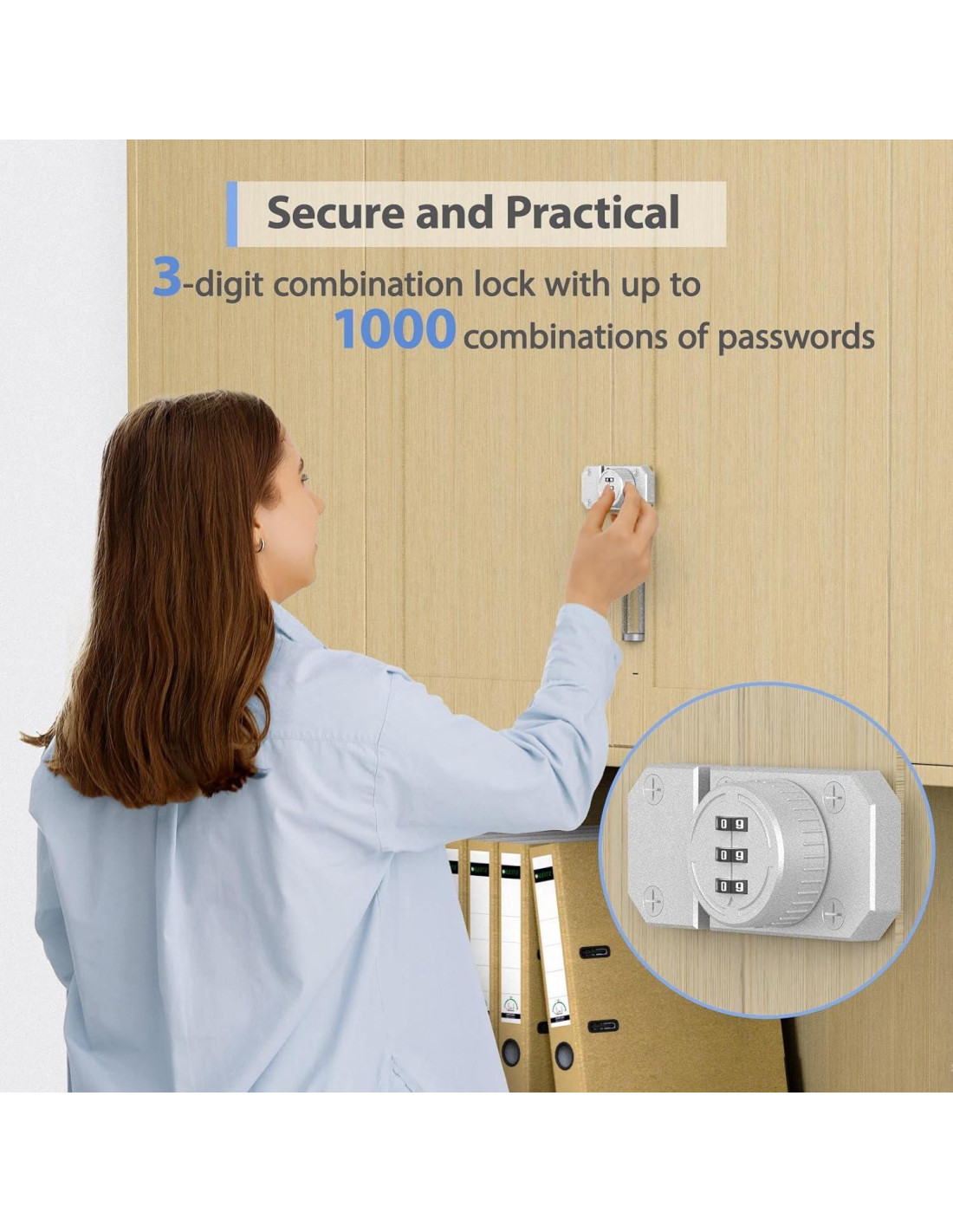 - Amplia Aplicabilidad: La cerradura de gabinete de combinación de 3 dígitos es adecuada para casilleros, closets, enfriadores de vino, cajas fuertes, archivadores de oficina, cajones, vitrinas, puertas unidireccionales, puertas de granero, etc., pero no es aplicable a puertas corredizas y puertas de doble apertura