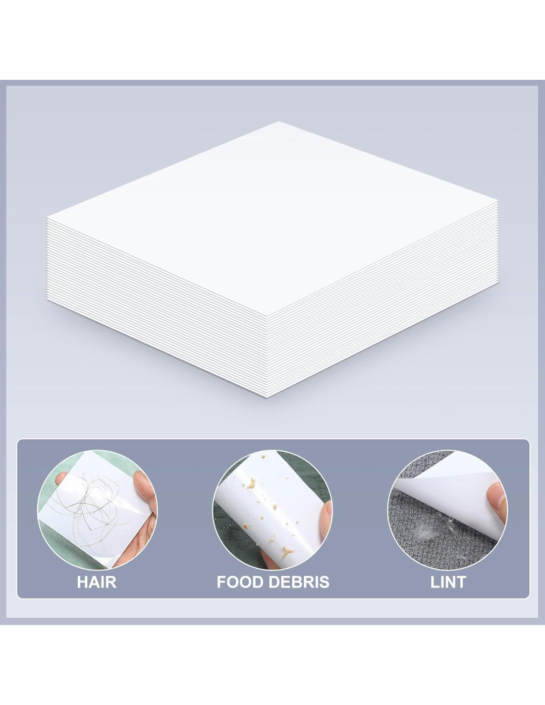 - Alto Rendimiento en la Eliminación de Pelusa: la superficie de las hojas adhesivas para quitar pelusa está cuidadosamente diseñada para absorber rápidamente y de manera efectiva todo tipo de pelusa, polvo, pelusa, pelo de mascotas, etc.; Simplemente enrolla o pégala suavemente, y tu ropa estará tan limpia como nueva, ayudándote a mantener una apariencia elegante en todo momento