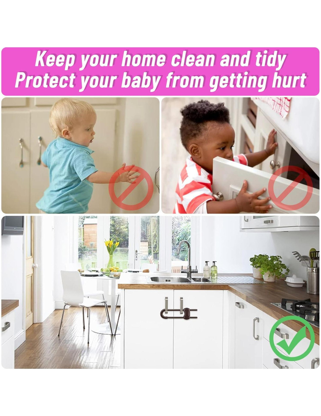 - Diseño Inteligente Las cerraduras en forma de U son reutilizables y ajustables. Es difícil para un bebé pequeño entenderlo y desbloquearlo debido al diseño a prueba de niños. Los adultos pueden abrirlo y cerrarlo fácilmente. Puede ajustar las cerraduras de seguridad entre 2.54 cm y 15.24 cm.