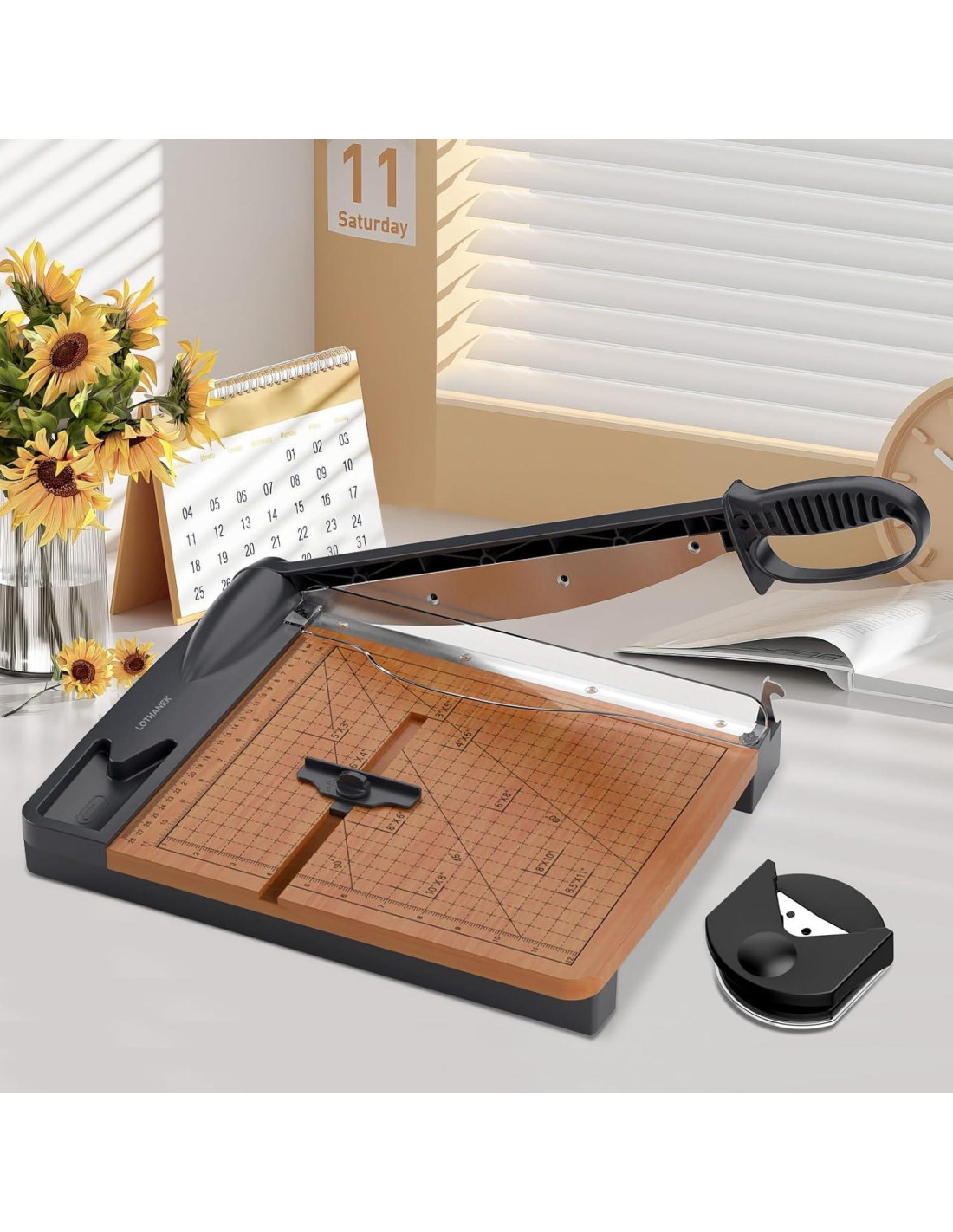 - Guillotina de Papel de MDF Resistente con Redondeador de Esquinas y Clips de Papel: Equipado con una precisa cuchilla de guillotina y una cuadrícula de alineación, esta cortadora simplifica las tareas de corte comunes. Su base de madera sólida asegura estabilidad, haciéndola perfecta tanto para el hogar como para la oficina.