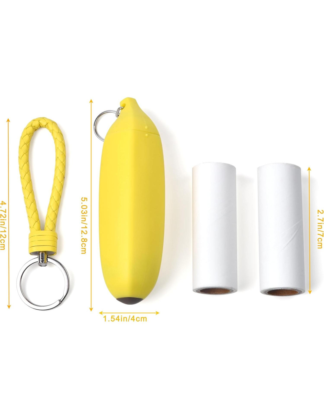 - Fácil de usar: Simplemente sostiene el cuerpo del Quitapelusas Portátil Banana con una mano, saca la mecha de repuesto de la cabeza y despega la primera hoja adhesiva en la parte superior para usar.