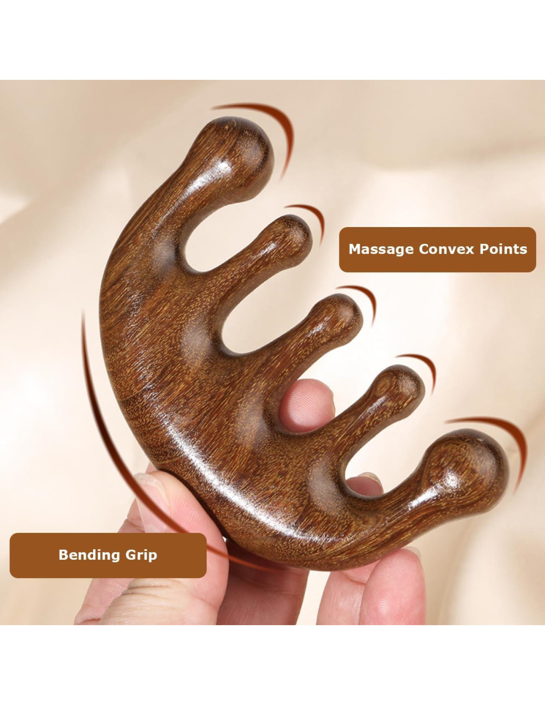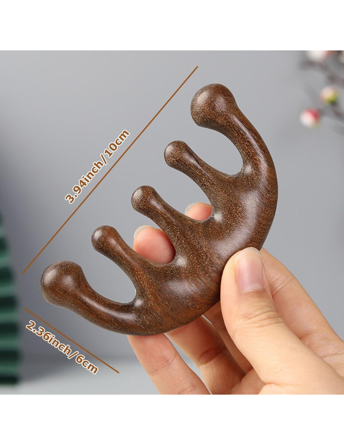 Masajeador de cuero cabelludo de madera para el crecimiento del cabello - Peine de dientes anchos hecho a mano de 100% sándalo, masaje de cuero cabelludo y acupunto, relajación del cuero cabelludo y promueve la circulación sanguínea