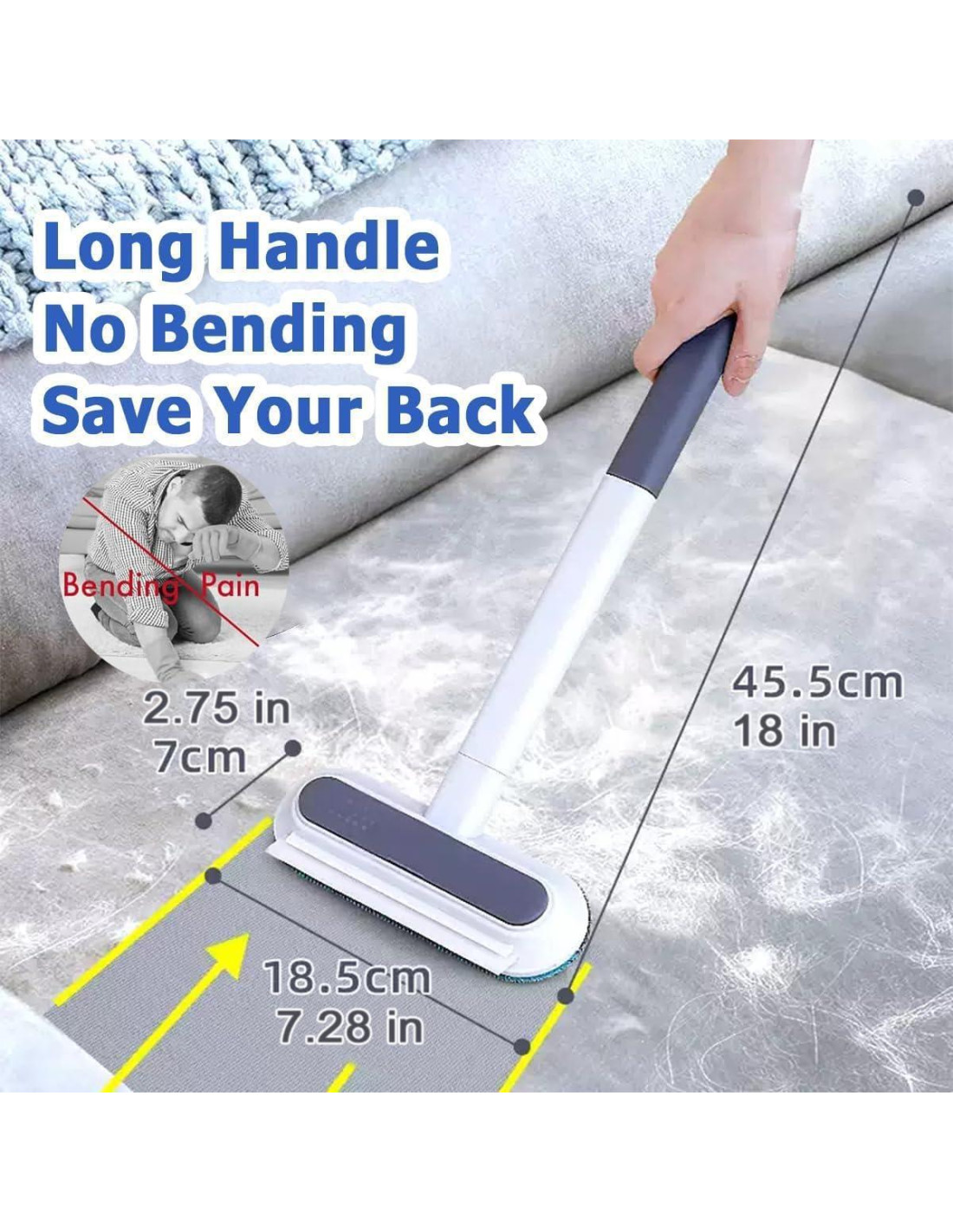 - Diseño que No Daña la Cintura Esta herramienta de eliminación de pelusa para muebles de perros y gatos con mango extra grande de 14 pulgadas (35.56 cm) nunca ha sido tan FÁCIL de limpiar. Simplemente cepilla hacia adelante y hacia atrás con el rastrillo de pelo de gato y tira las "Tiras de Pelo", todo sin forzar tu espalda.