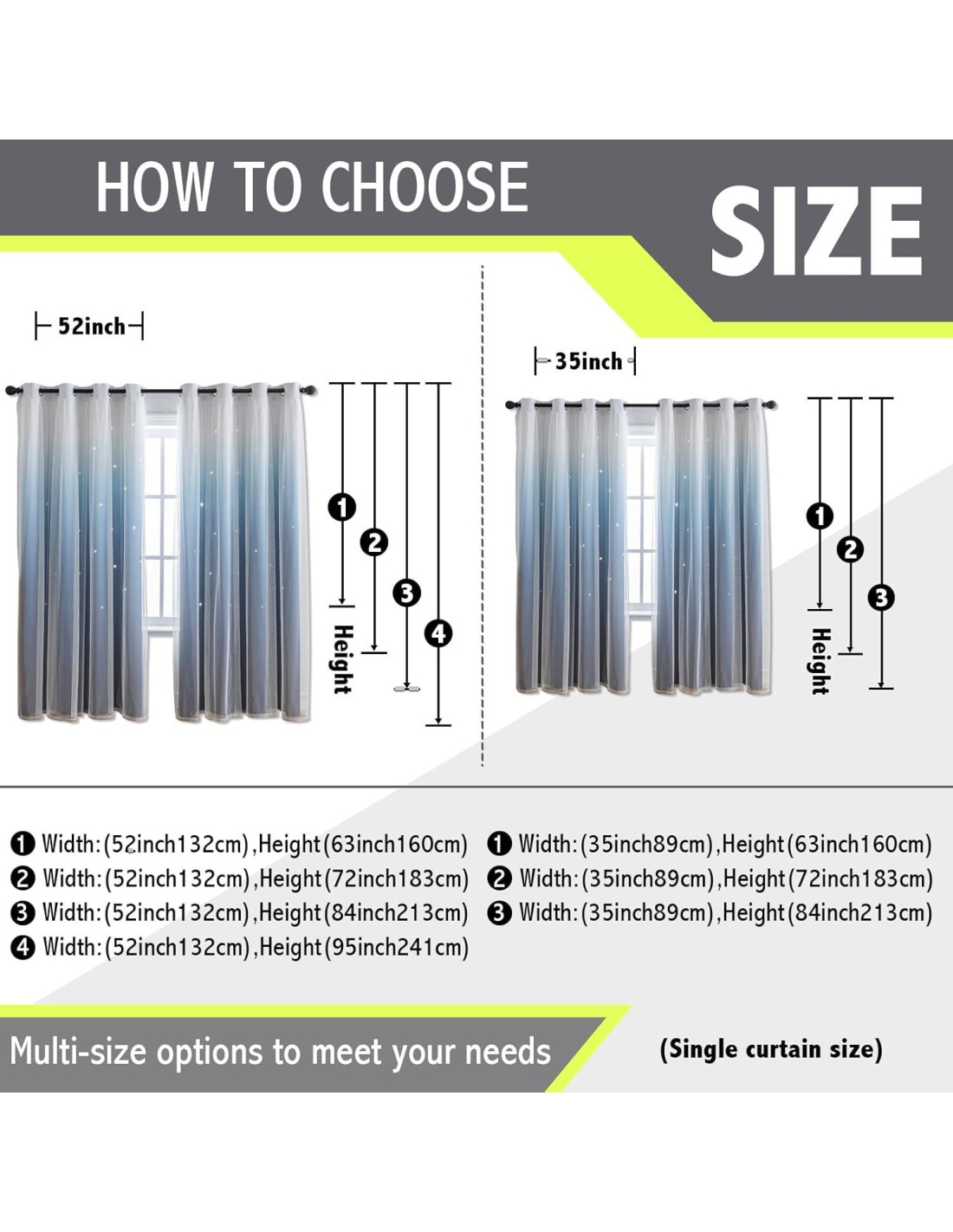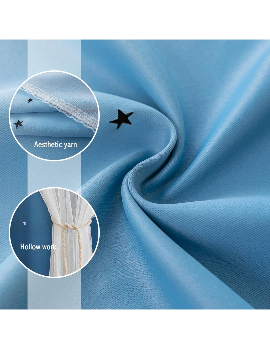 - Diseño Único: Nuestras cortinas para niños presentan un diseño de doble capa, con la capa interior mostrando cortinas opacas impresas y la capa exterior adornada con tul. Usando tecnología láser de vanguardia, cortamos intrincadamente estrellas en la cortina interior. Cuando la luz del sol filtra a través, crea un efecto de cielo estrellado hipnotizante, perfecto para despertar la imaginación y la maravilla.