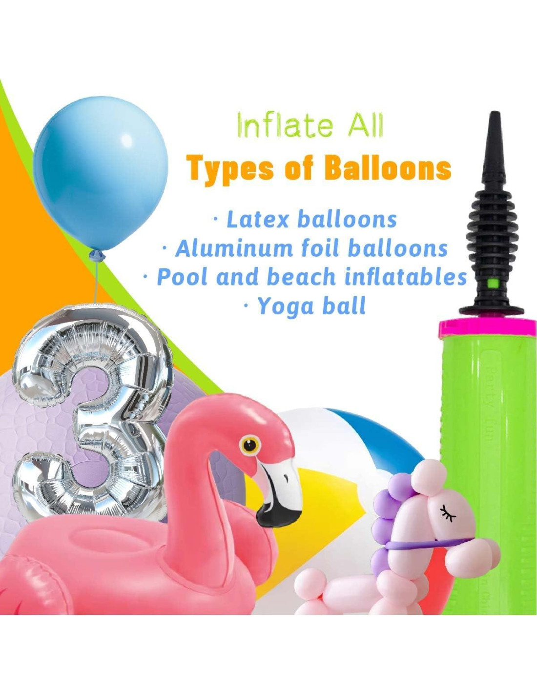 - [Amplias aplicaciones] Adecuado para globos de látex, globos de aluminio, inflables de piscina y playa, pelotas de yoga, decoraciones para fiestas de cumpleaños...