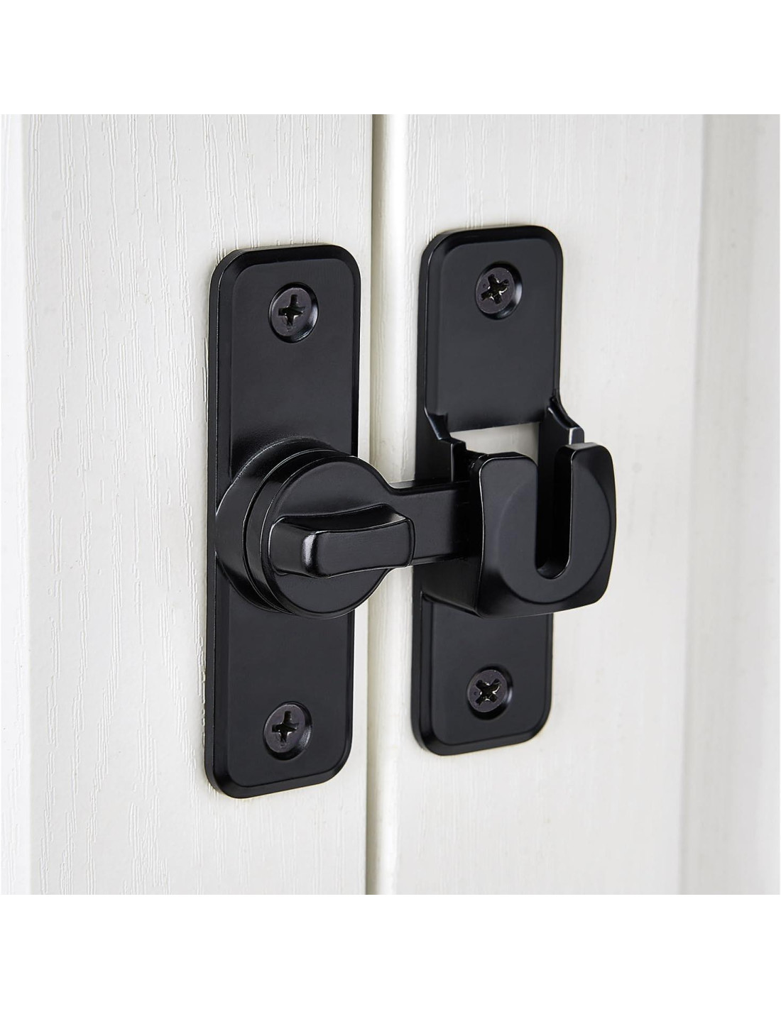 - El paquete incluye - 1 cerradura de puerta de granero negra, 4 tornillos.