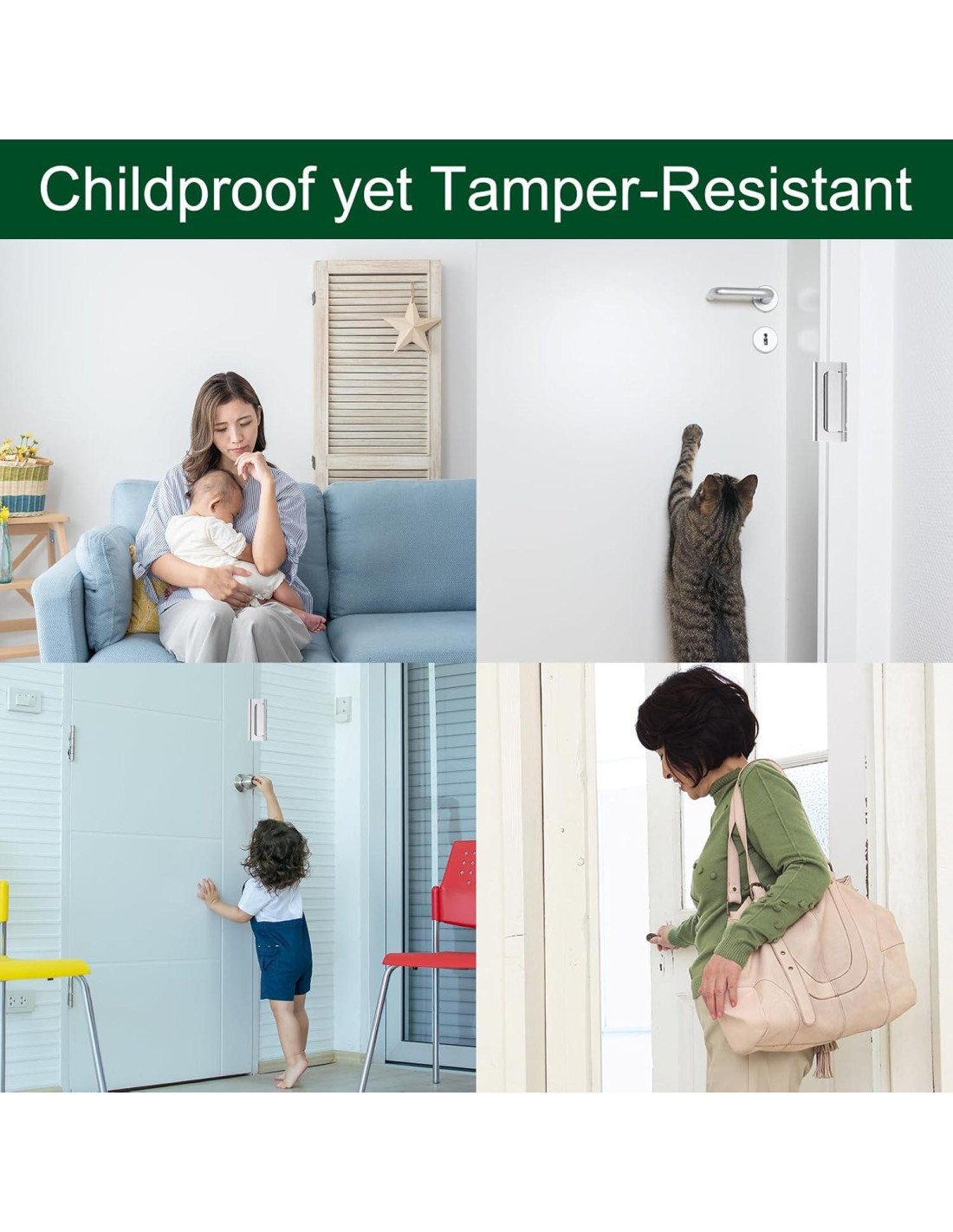 - Paquete Incluido - recibirás 4 juegos de cerraduras de seguridad para el hogar para satisfacer tus necesidades; La cerradura de la puerta interior añade seguridad adicional para los miembros de la familia para prevenir la apertura de puertas a otros. Además, no solo las puertas no pueden ser pateadas por intrusos, también protege contra ganzúas y golpes mientras está en posición de bloqueo.