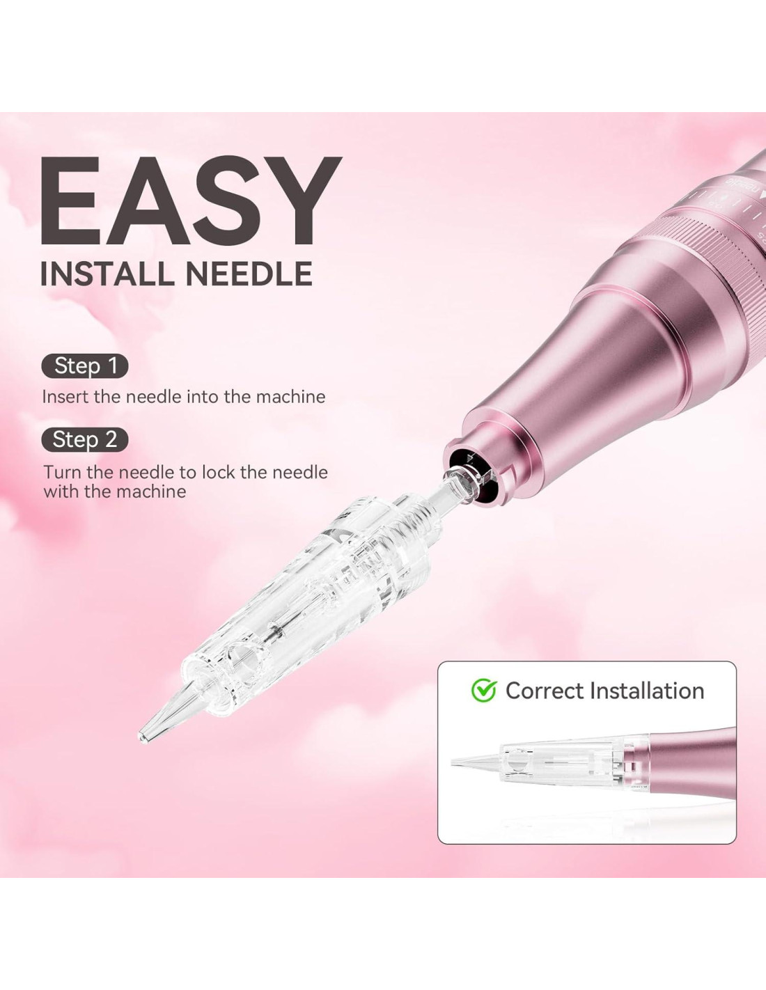 - Pluma Rotativa Inalámbrica (Sin Cable): La máquina funciona con batería de litio o adaptador AC/DC. Diseño ergonómico y apariencia exquisita. También puedes ajustar la longitud de la aguja protruyente con la parte del mango. Incluye 15 piezas de agujas 1R/1P.